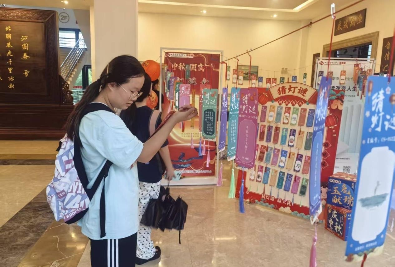为迎接中华人民共和国成立76周年,传承中华民族优秀传统文化,丰富校园文化生活,图书馆于9月28日-30日在西校区图书馆一楼大厅举办“月圆书香迎华诞,灯谜雅韵庆双节”主题灯谜活动。活动以“猜灯谜、品书香、迎双节”为核心,吸引了全校500余名师生参与,现场气氛热烈,洋溢着浓厚的节日氛围与文化气息。