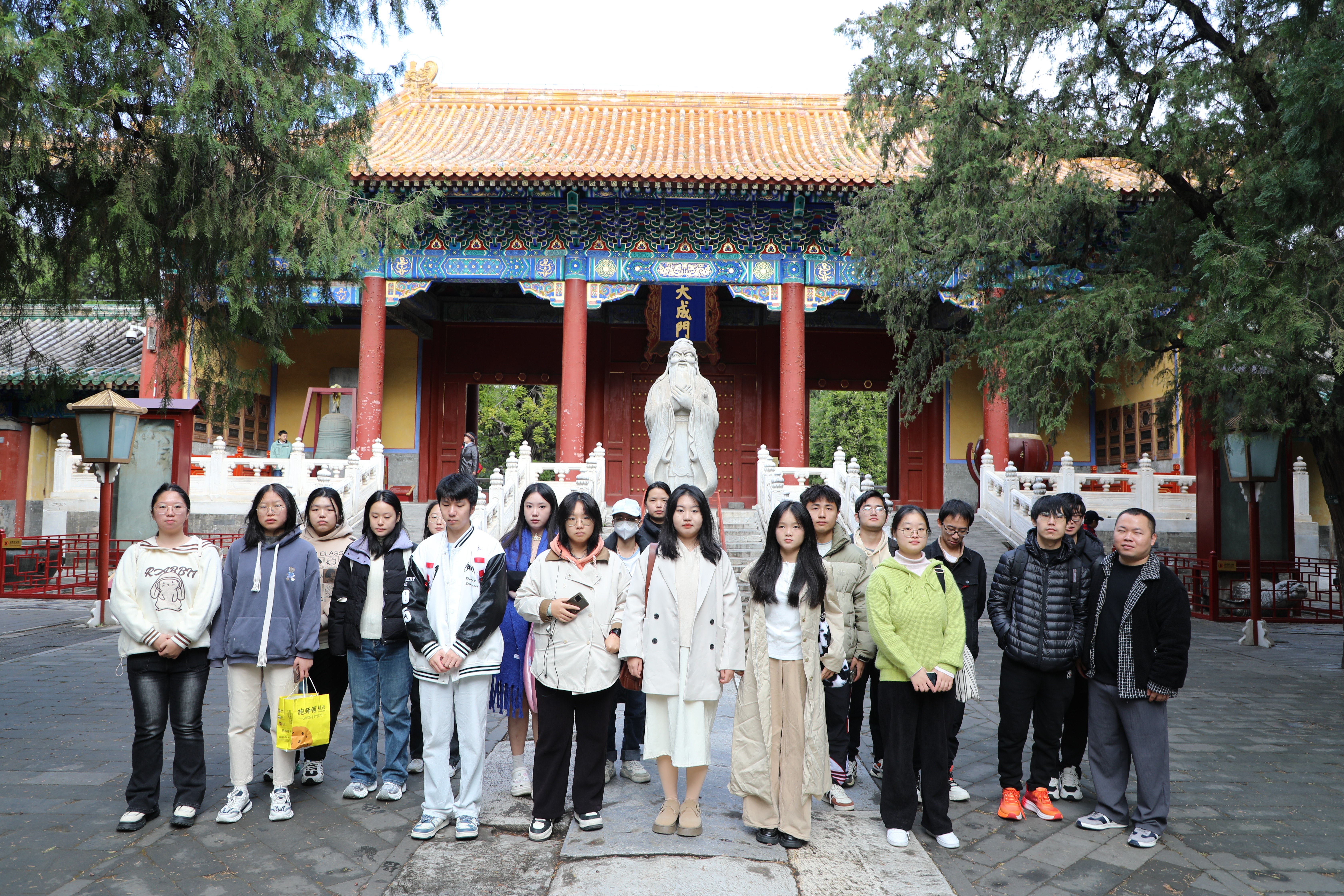 为进一步拓宽学生的专业视野,加强理论学习与实践教育相融合,提升学生的综合素质,10月22日上午,哲学学院哲学专业2021级27名学生在哲学教研室副主任余余和班主任程祥老师的带领下,赴北京孔庙和国子监博物馆开展专业考察活动。此次活动旨在通过亲身现场考察的方式,让学生深入了解中国历史的科举和教育制度,感受中华民族悠久的历史发展、深厚的文化底蕴和精神传承。