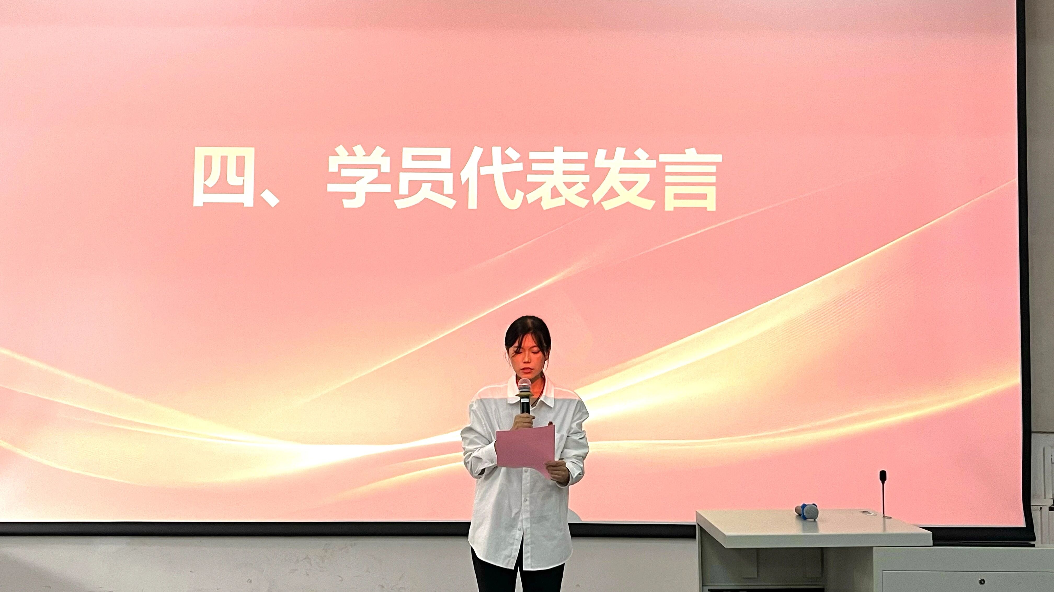 学员代表张嘉莹宣读此次培训班规章制度,规范学员学习态度。