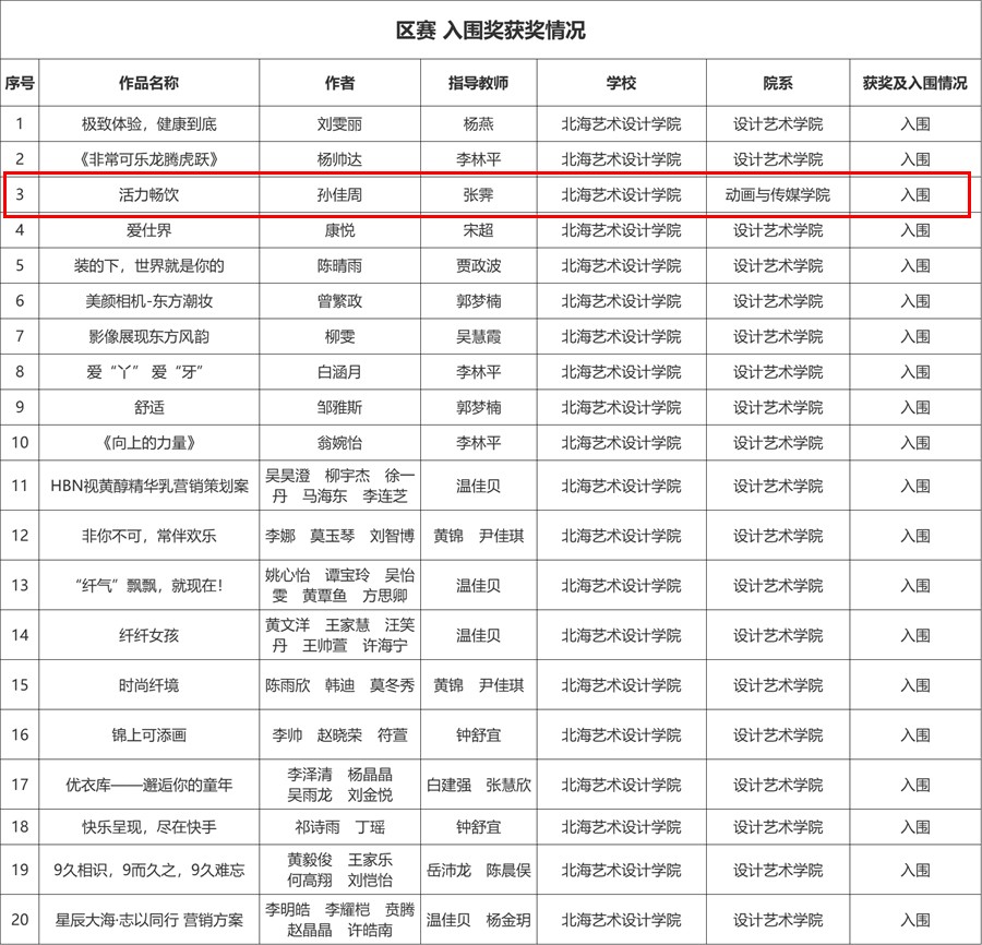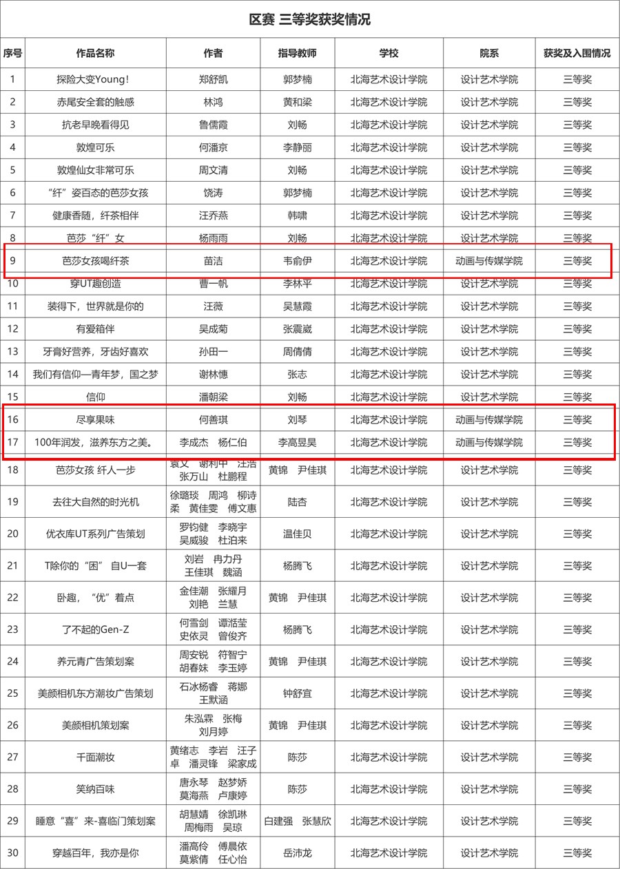 动画与传媒学院在第十四届全国大学生广告艺术大赛广西赛区中获得佳绩