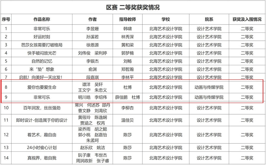 动画与传媒学院取得二等奖2项,三等奖3项,入围奖1项,共计6项奖项的好成绩。