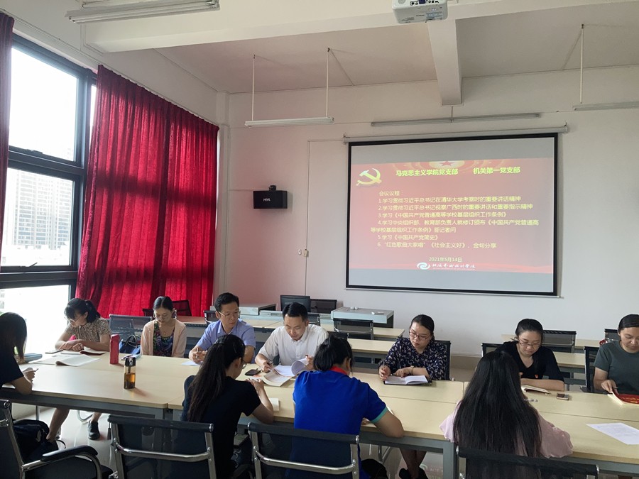 2021年5月14日,马克思主义学院党支部、机关第一党支部在西校区图书馆503党员政治生活室联合开展“学党史 感党恩 跟党走”主题党日及专题学习活动。马克思主义党支部、机关第一党支部全体党员参加活动,活动由马克思主义学院党支部书记刘承初主持。