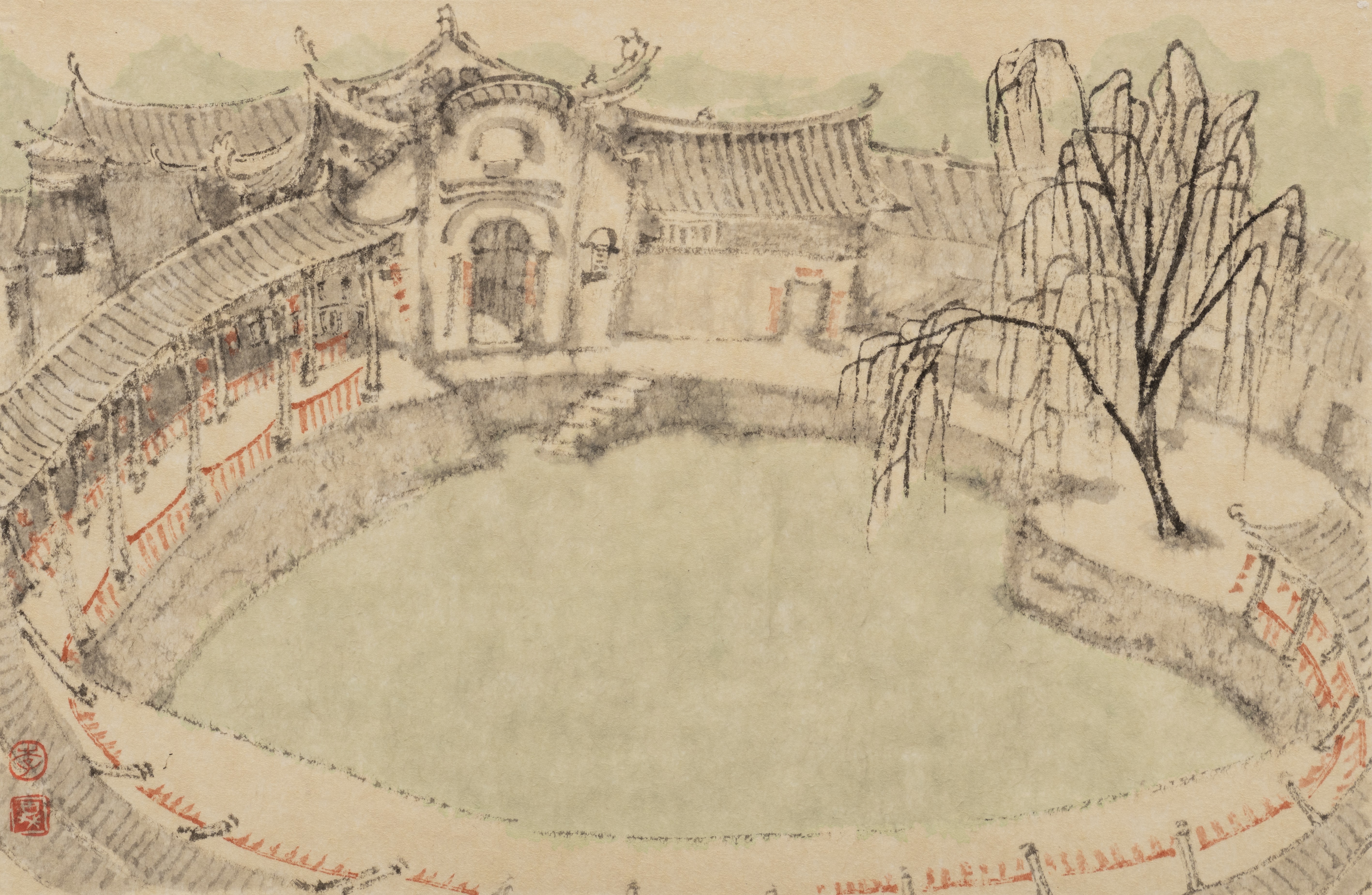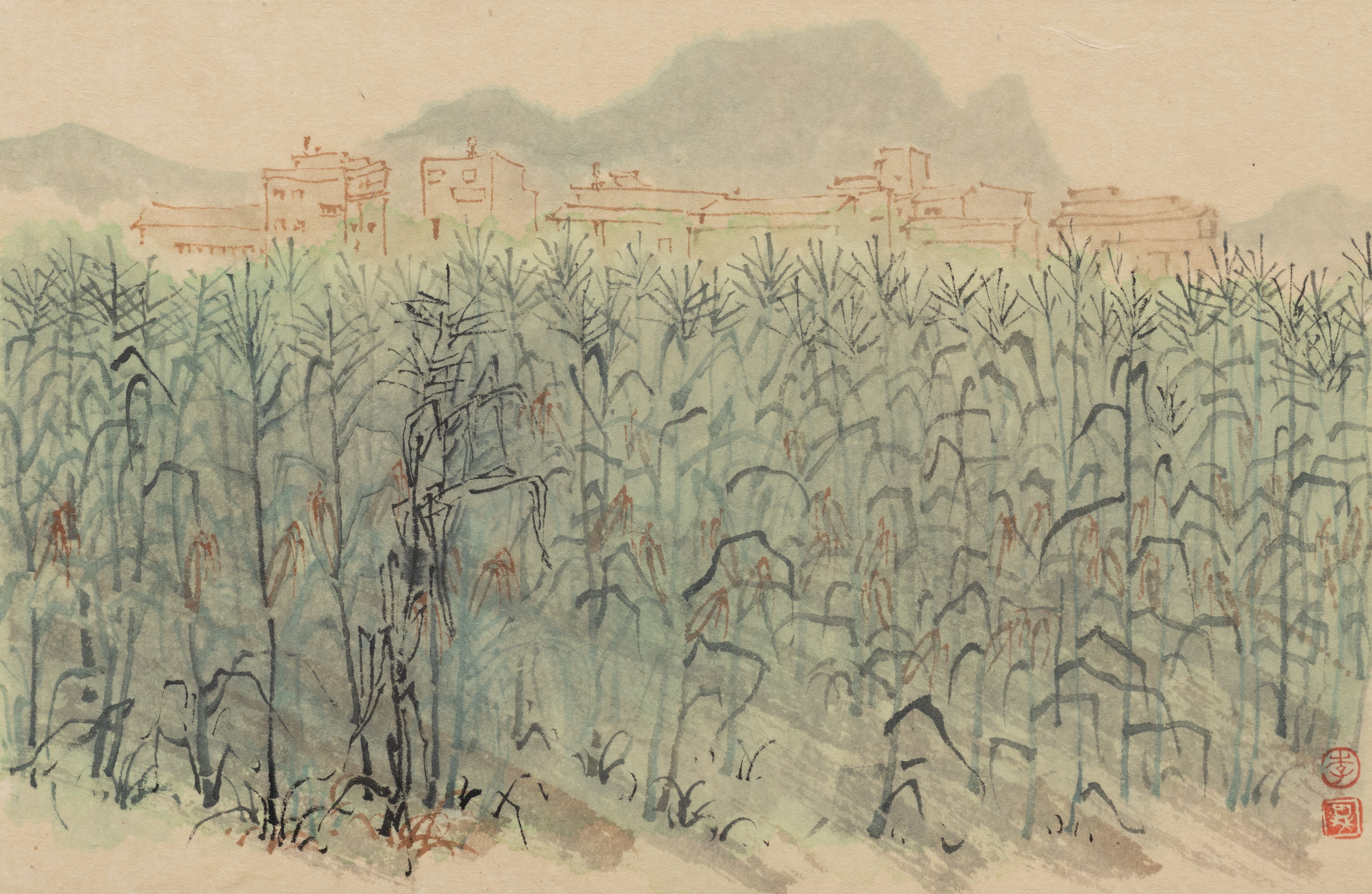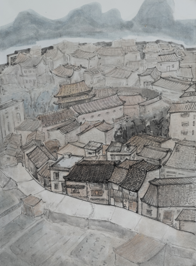 龙义敏教授作品《贺州古村印象之一》,40cmx70cm