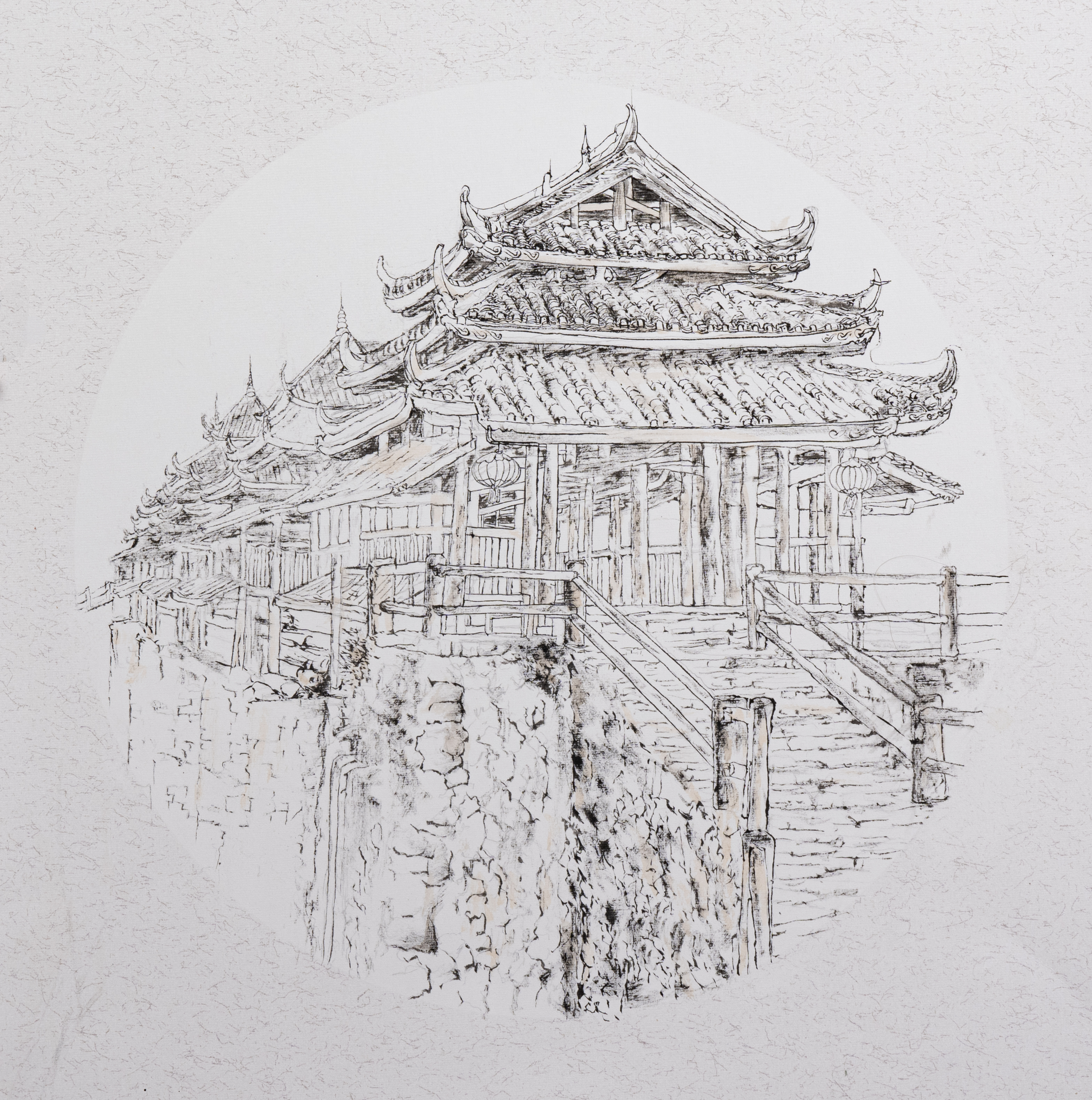 学生作品:美术学2413、14班,黎梓蓉三江巷里的檐角》,26cmX37cm