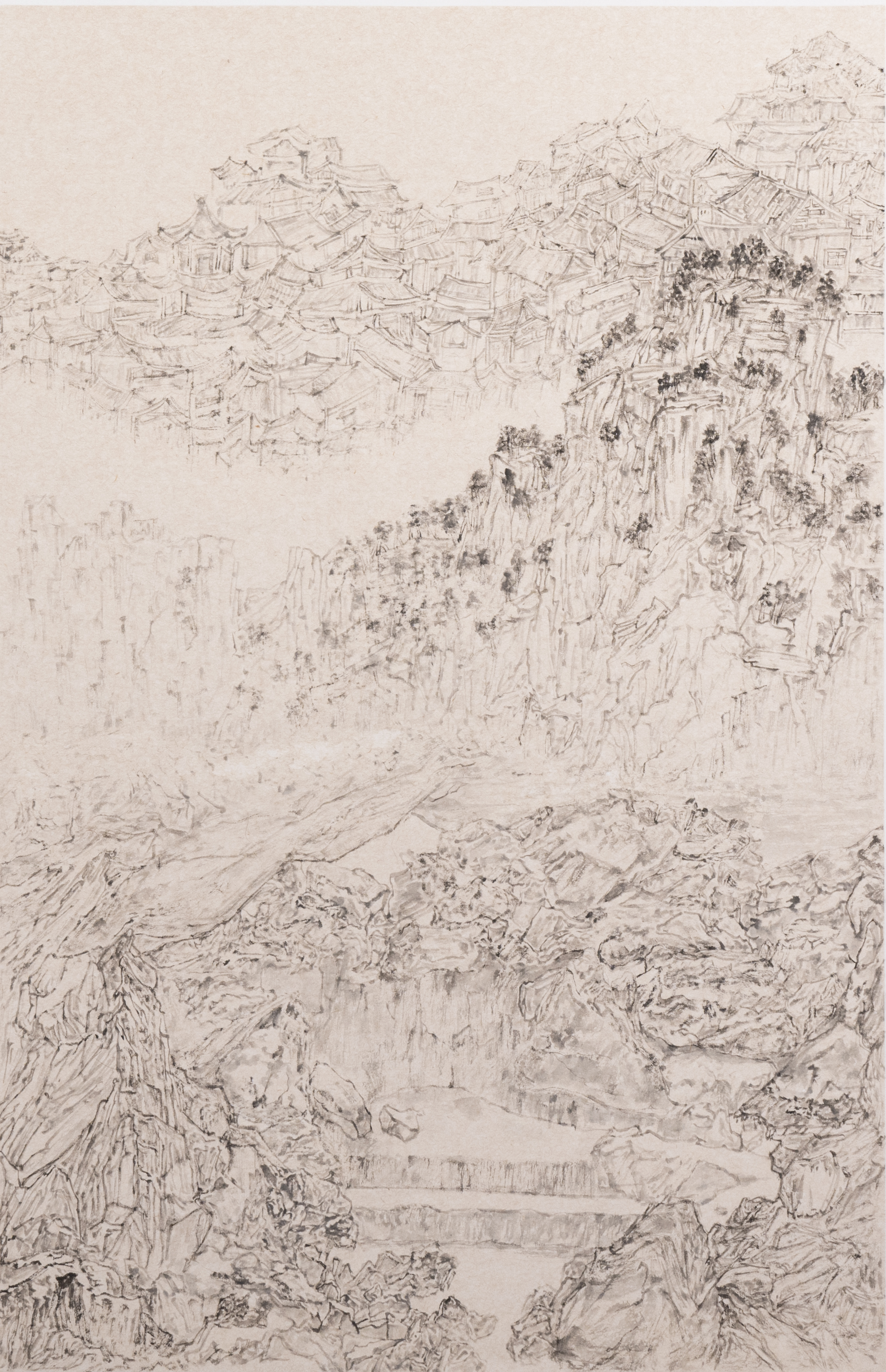 学生作品:绘画2302班,周彬彬洞天叠嶂》,65cmX45cm