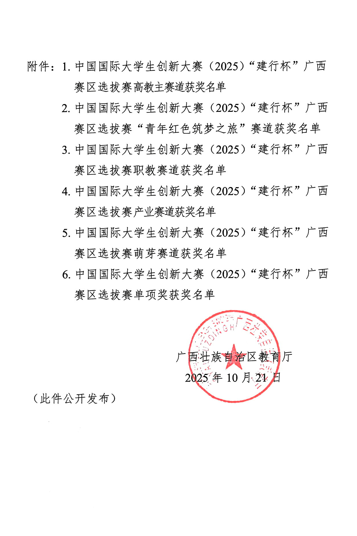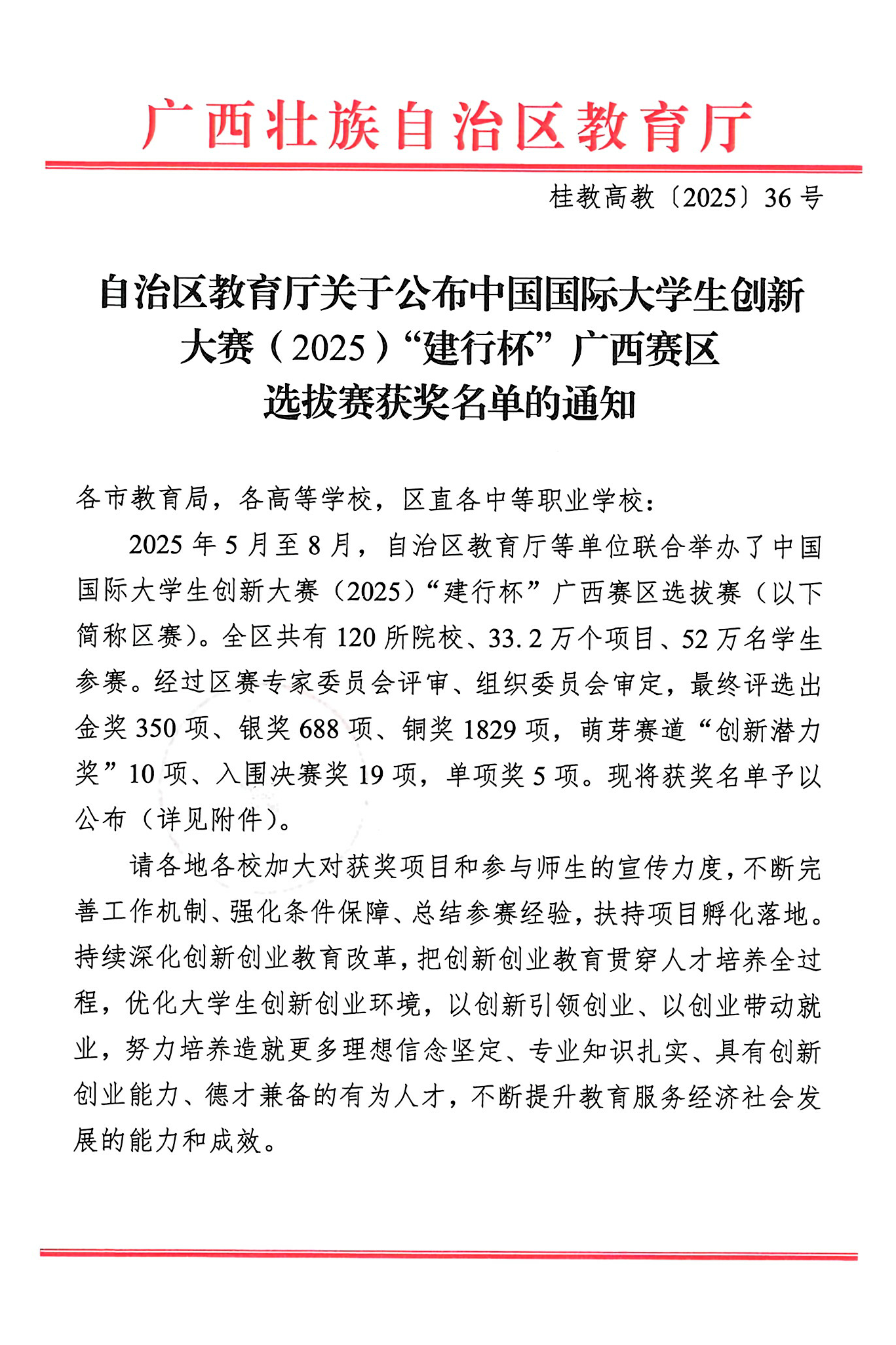 我校在中国国际大学生创新大赛(2025)“建行杯”广西赛区选拔赛获奖名单