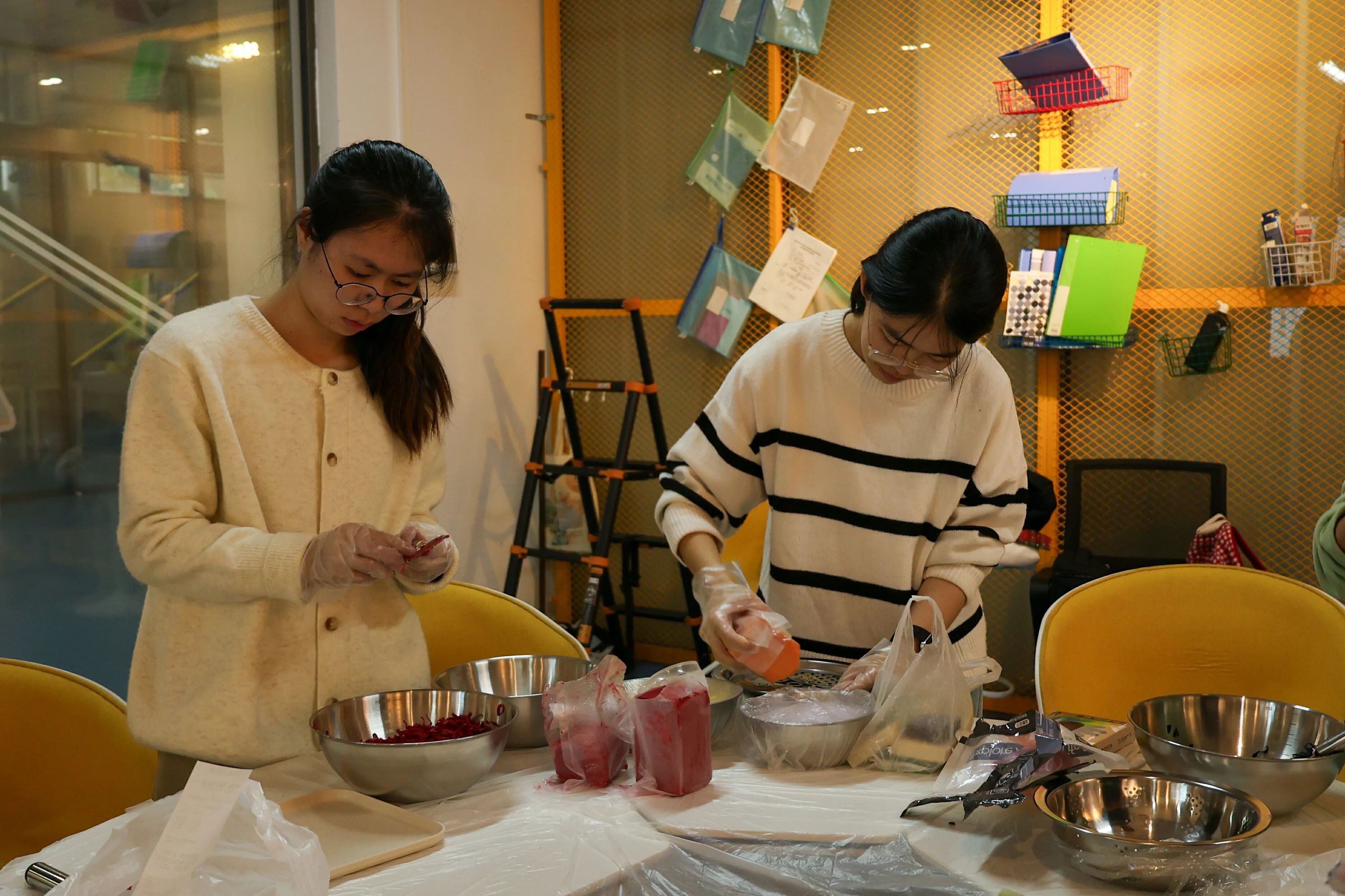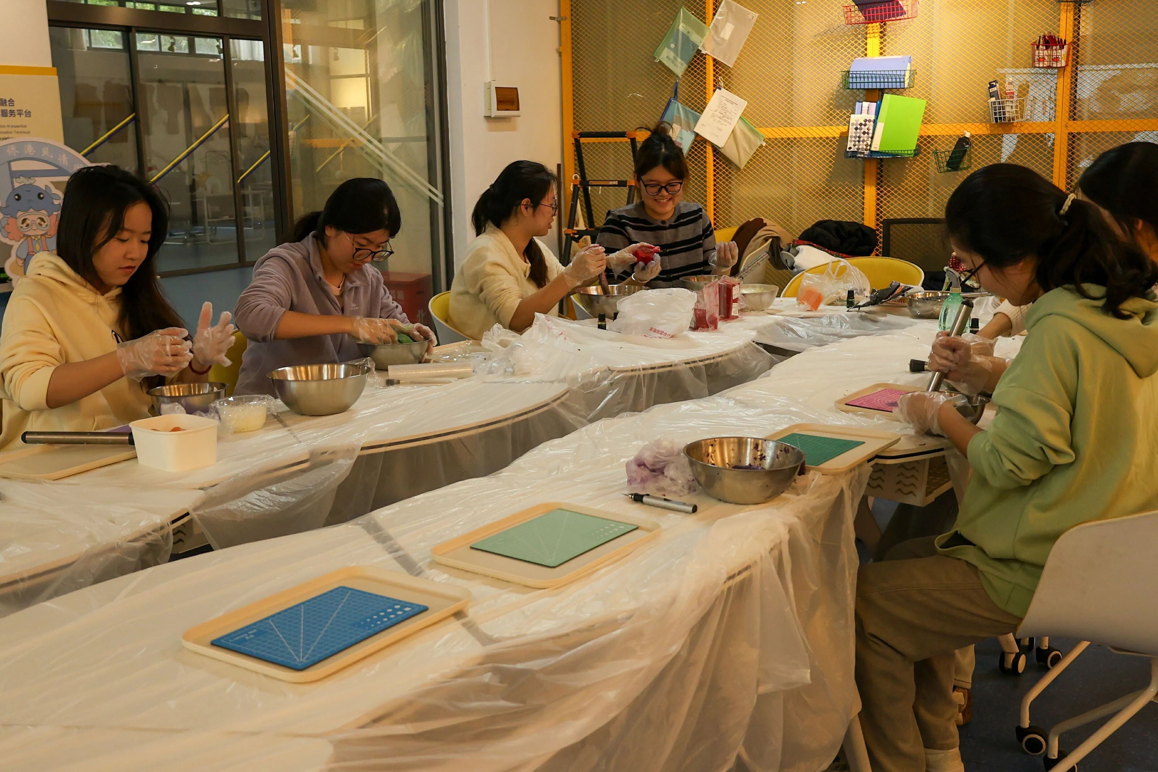 12 月 16 日下午,由我校大学生创新创业训练计划项目“美的历程——艺术疗愈公益项目”团队策划的“古今同皂”非遗古法制皂体验活动,在西校区图书馆负一楼顺利开展。活动创新融合非物质文化遗产传承、手作艺术实践与心理疗愈功能,引导参与者在沉浸式体验中实现文化感知与自我观照的双重收获。
