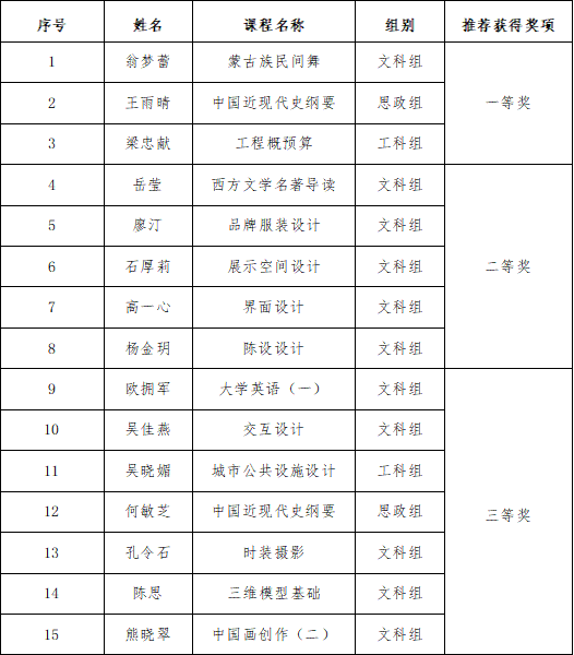 北海艺术设计学院第八届青年教师教学竞赛结果公示