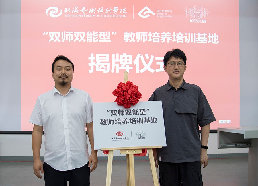 首先进行了我校与筑梦文创共建“双师双能型”教师培养培训基地的揭牌仪式,借此共建机会,加强“双师双能型”教师队伍建设,进一步提升应用型人才培养质量,增强服务地方经济社会发展能力
