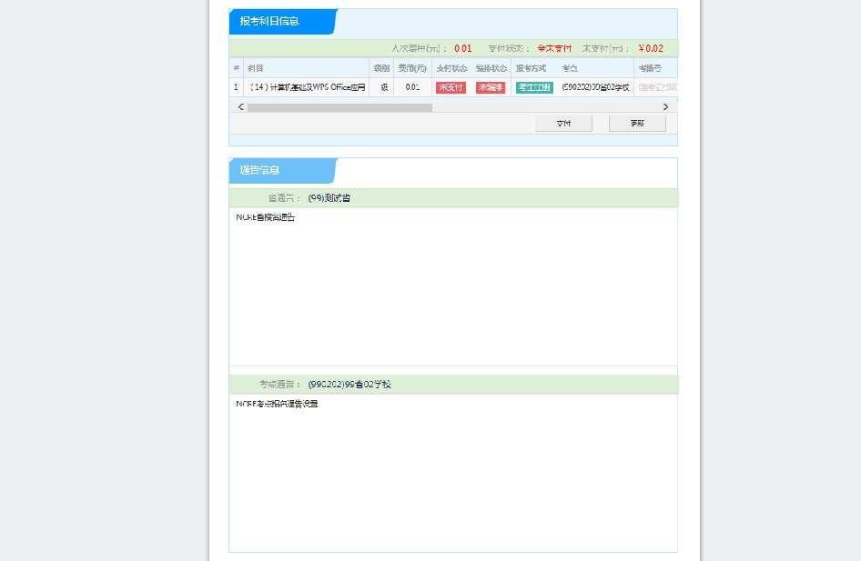 注意:若考点不需要信息审核,则考生可跳过上面的审核相关步骤,直接进行支付操作。