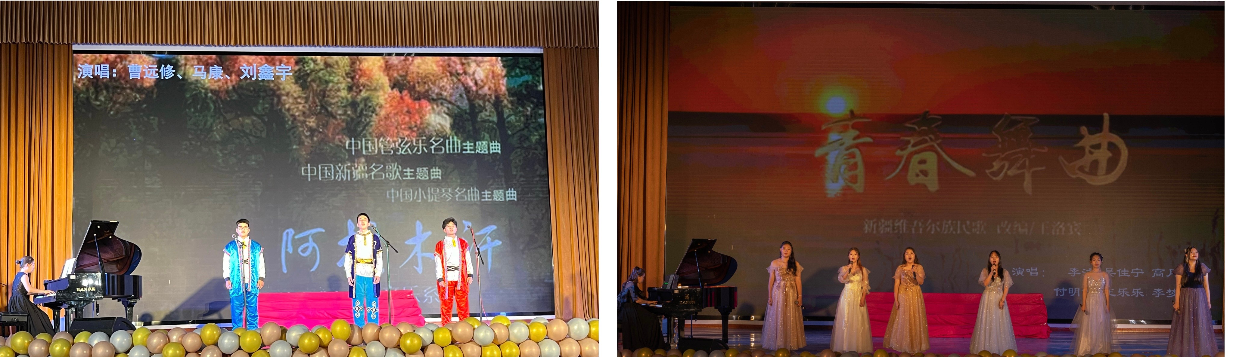 青春启航,奔赴星辰。2023年5月28日,学院艺术教育专业声乐课程汇报演出在西校区大礼堂成功举办。学校党委委员刘承初、学院副院长李水亮、李谦。艺术教育、学前教育专业师生应邀出席。本次汇报演出由学院艺术教育教研室承办,艺术教育专业2020、2021级音乐班全体学生参演。整场演出凸显“一带一路,繁花似锦”主题,以学生为主、老师为辅,通过师生默契合作,歌声悠悠,青春浪漫,为现场来宾奉上一场精彩绝伦的艺术盛宴,共同留下了一个美妙难忘的声乐记忆。