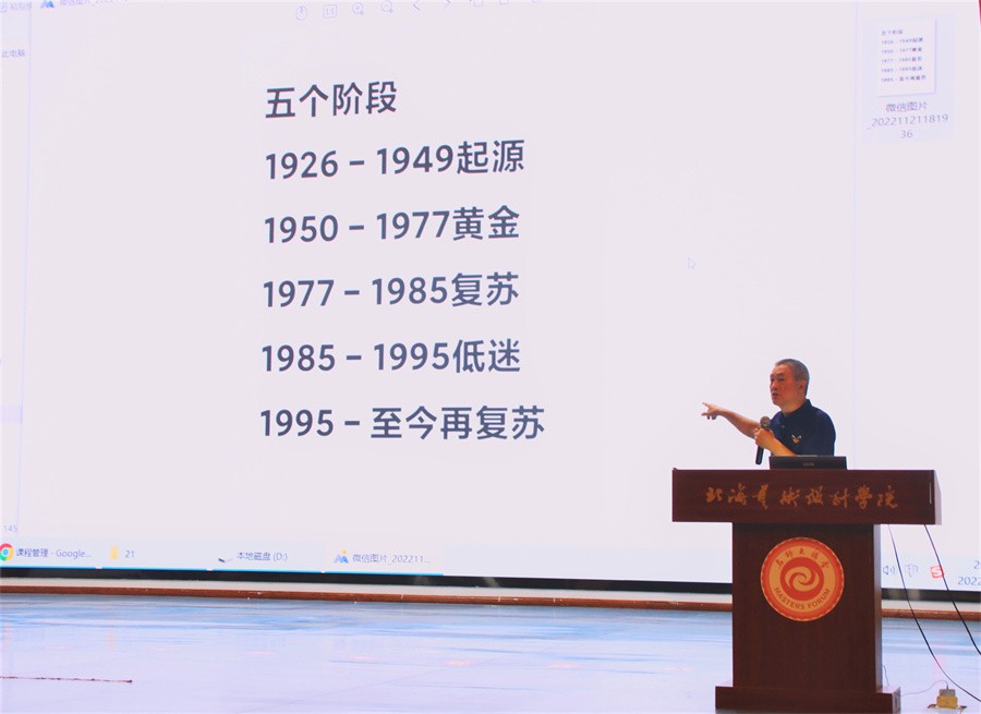讲座一开始,王钢教授通过播放作品《雁阵》、《昆虫联盟》两部动画作品,详细阐述了中国动画的发展历程。为让在场师生进一步了解体会中国动画发展不同阶段的特点,王钢教授回顾了中国动画的历史,多维度分享了他的从业与创作经历。他表示,今年正值中国动画诞生百年,要珍惜当下的学习环境,时刻怀有一颗热爱动画的心。