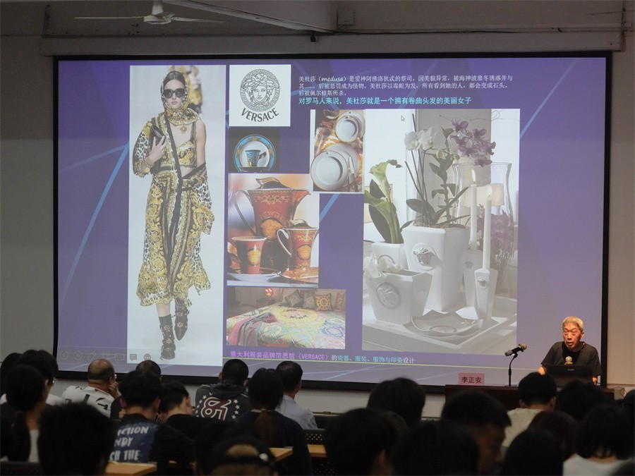 随后,李正安教授向在场师生介绍陶瓷的文化及其产品设计的发展,陶瓷设计不仅使人感受生活、享受生活,而且其成为了众多陶瓷制作者施展智慧的动因。此外,李正安教授通过德国麦森、罗森塔尔和英国威基伍德等一系列瓷业品牌的介绍、展示,让在场师生了解到瓷器运用到生活各个领域,不仅精致美丽,而且富有实用性。