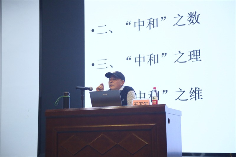 王玉生教授首先讲述了“致中和”的概念,表现了从古至今“致中和”在人们心中的重要地位,并通过举例和正反对比的方法证实“致中和”的重要性。王玉生教授表示,在“中和”之象中,反“中和”之危象是紧张、冲突、不谐,而“中和”之祥象是顺祥、和谐;在“中和”之数中,反“中和”之数是过、不及,“中和”之数在中节,而中节的是美德示例为:鲁莽、勇敢、怯懦;在“中和”之理中,从阴阳八卦、平衡、和谐、协调讲述天地之理;在最后的“中和”之维中,从职场三段、人生三段、人生兵法出发,在人生三段强调,人生需要管理 ,要做到“水滴石穿”的人生兵法。王玉生教授阐述融于中国传统文化中的“中和”之道,“致中和”就是协调、平衡。
