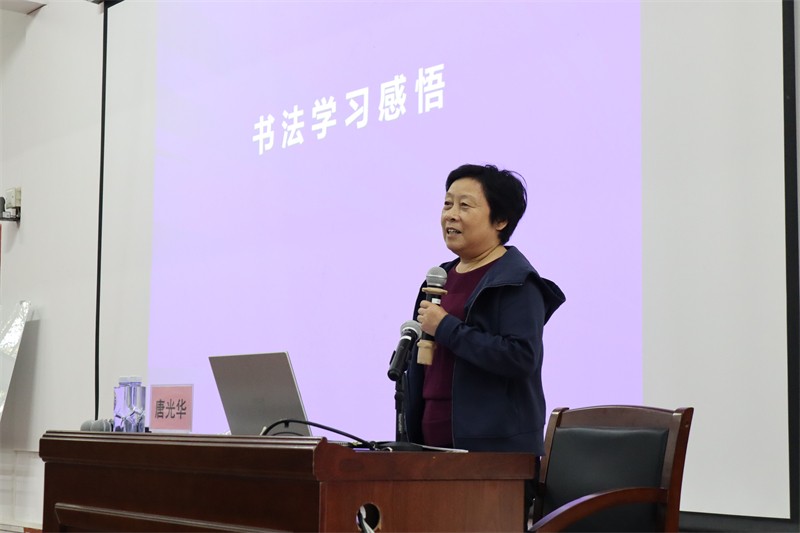 11月7日上午,陕西省政府文史馆特邀研究员、陕西省妇女书画协会副主席唐光华莅临我校,在西校区伦理楼107为学校师生带来了一场题为《书法学习感悟》的精彩讲座。