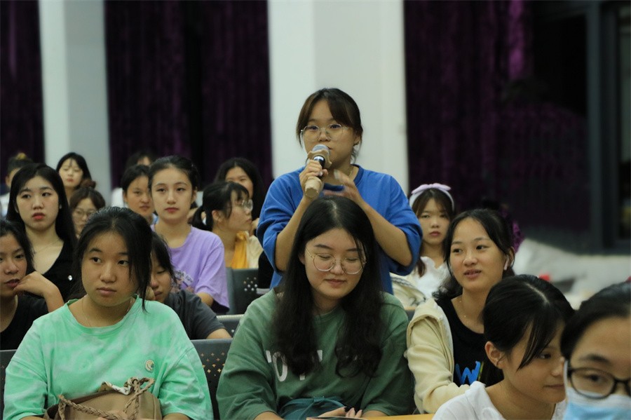 紧接着,黎东明教授以社会角色为中心,为大家讲解专业意识对专业选择的重要性。他以专业能力的发挥在文化艺术活动中的体现展开讲授,进而剖析专业理念在个人定位中的实现与社会给予的专业期待之间相互转换的关系。他以诸多书法家经历为背景,帮助同学们认清专业历史发展规律,“认清历史,才能认清现在;认清历史发展规律,才能加入到时代发展中去”。黎东明教授进一步结合专业理念,指出“发展个人就是发展学科”,大学生应该具备强烈的理念意识,凭借自身发展增强学科竞争力,以自身努力形成个体发展与专业学科点的良性循环。他还强调树立专业理念在社会活动中对个人社会角色的体现,以及专业理念在社会反映中至关重要的作用,帮助大家在认清专业的历史发展规律的同时,自觉成为时代发展洪流中的一员。