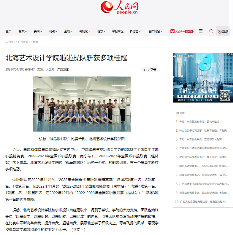 人民网:北海艺术设计学院啦啦操队斩获多项桂冠