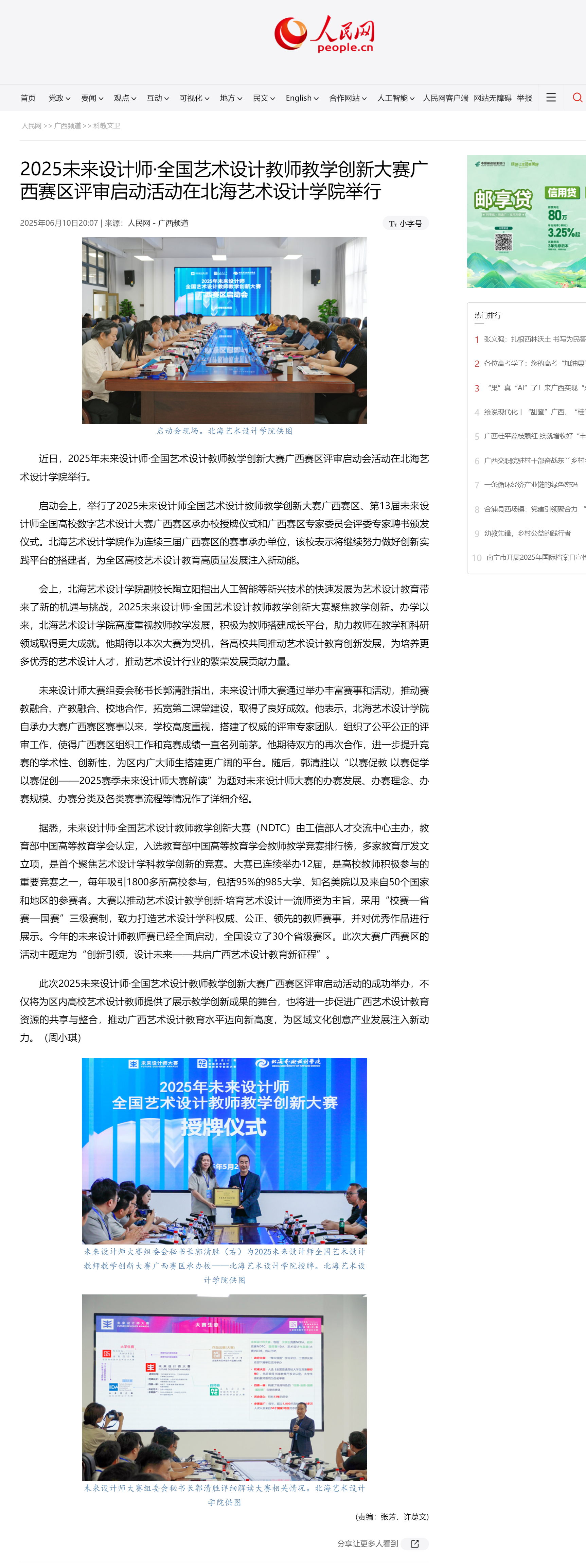 人民网:2025未来设计师·全国艺术设计教师教学创新大赛广西赛区评审启动活动在北海艺术设计学院举行