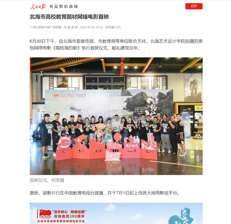 人民日报:北海市高校教育题材网络电影首映