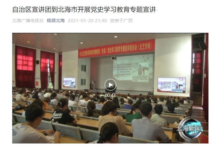 北海广播电视台:自治区宣讲团到北海市开展党史学习教育专题宣讲