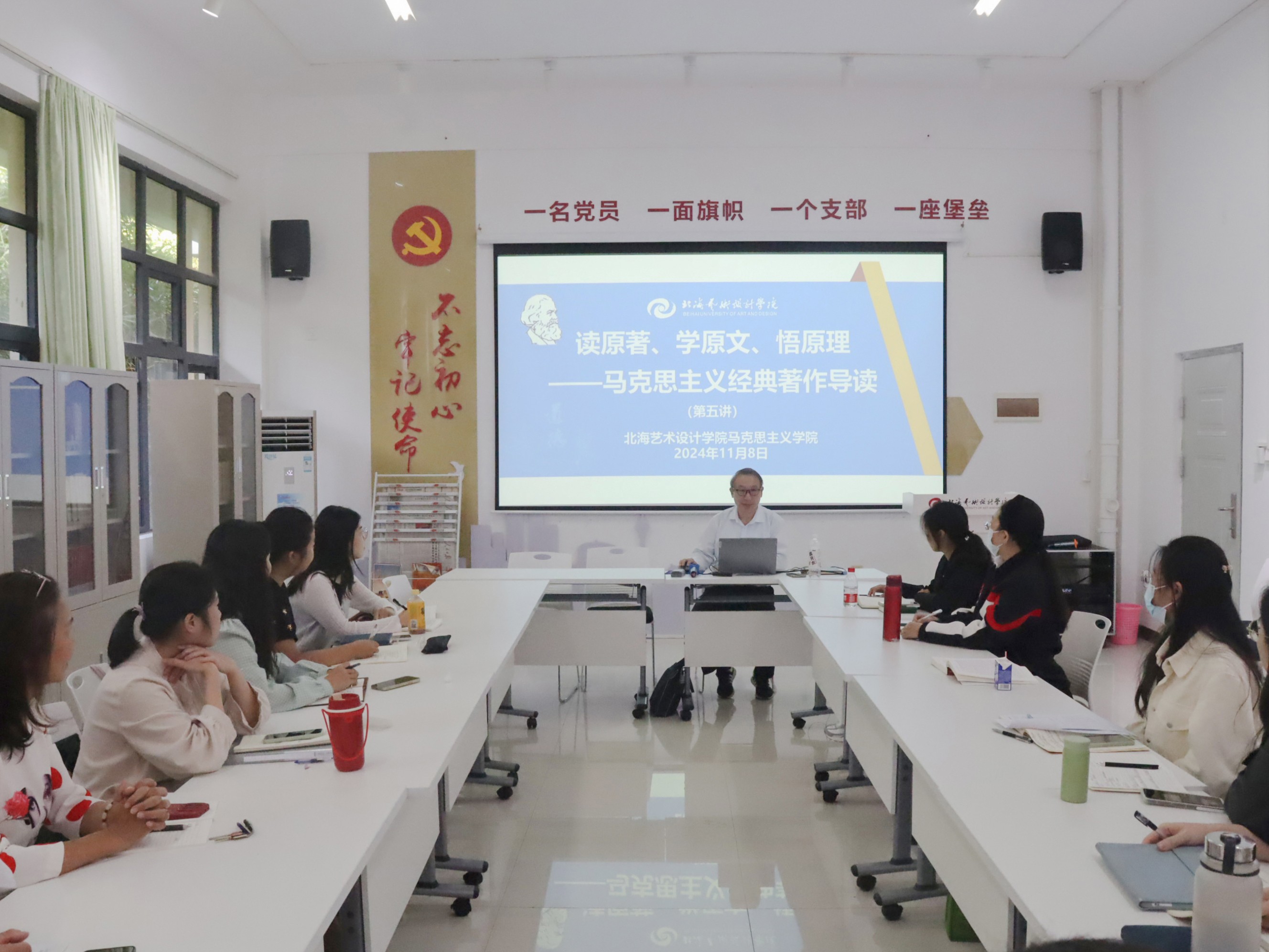 11月8日下午15:20,马克思主义经典著作导读系列活动第五讲在西校区行政楼103顺利举行,由胡细木副教授主讲《为人民服务》,我院综合办主任王佳碧主持,学院全体中青年教师参加。
