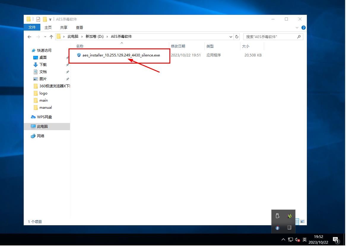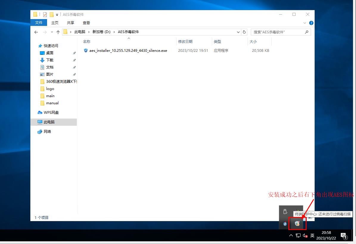 2.双击“aes_installer_10.255.129.249_4430_silence”运行安装,然后等待静默安装,直到电脑右下角出现AES的软件图标说明安装完毕,不同电脑安装时间不同,大概几分钟到十几分钟。
