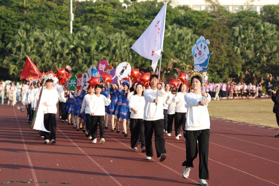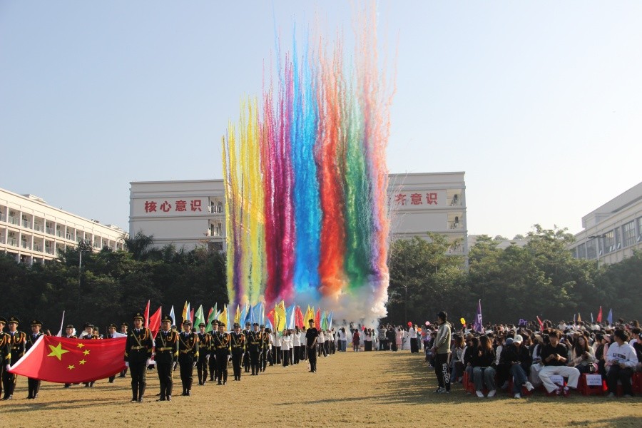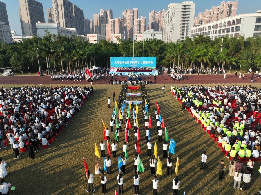 伴随着学校党委书记覃宪儒激昂有力的宣布声,礼炮轰然升空、直冲云霄,五彩斑斓的彩烟在赛场上空绚烂绽放、肆意飞扬。在这热烈的氛围中,一年一度的校园运动会正式拉开火热帷幕,北海艺术设计学院第十七届运动会也随之开启了为期两天的精彩赛事日程。