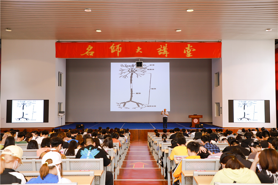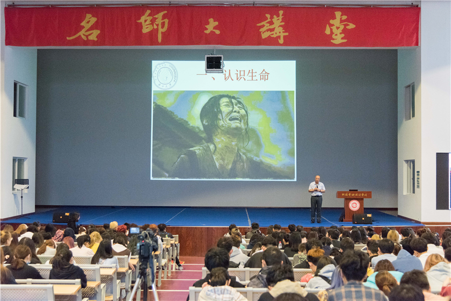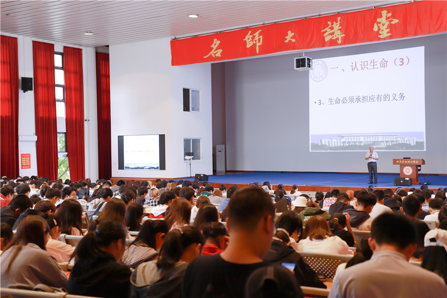 讲座开始,谭贤政教授提出了关于生命的两个问题,引发现场同学对珍爱生命的思考。谭教授表示快乐学习的前提就是要珍爱生命,希望同学们可以懂得“生命诚可贵”的道理。