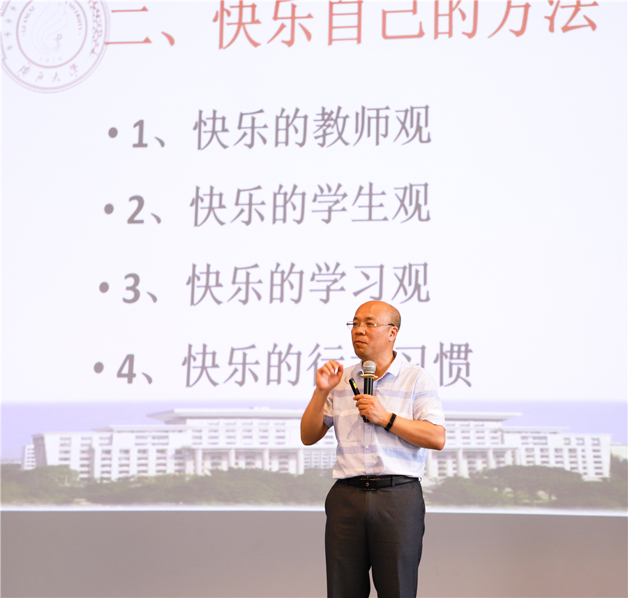 在讲述快乐自己的方法时,谭贤政教授结合个人经历表示,一位教师可以改变一个学生的命运,影响学生的一生,要平等关爱每一个学生、尊重理解每一个学生。培养快乐的学生观、学习观、学习习惯,对激发自身潜能、了解自身个性差异、提升自身社会关系有着重要作用。