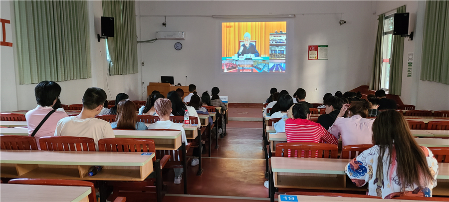 11月11日下午,学习贯彻党的十九届五中全会精神中央宣讲团报告会在教育部举行。中央宣讲团成员、教育部党组书记、部长陈宝生同志作了宣讲报告。为进一步扩大宣讲覆盖面,在教育系统掀起学习贯彻五中全会精神的热潮,自治区党委教育工委11月12日下午向全区教育系统播放陈宝生同志宣讲视频,我校师生党员60余人在东校区多媒体4教室集中学习。