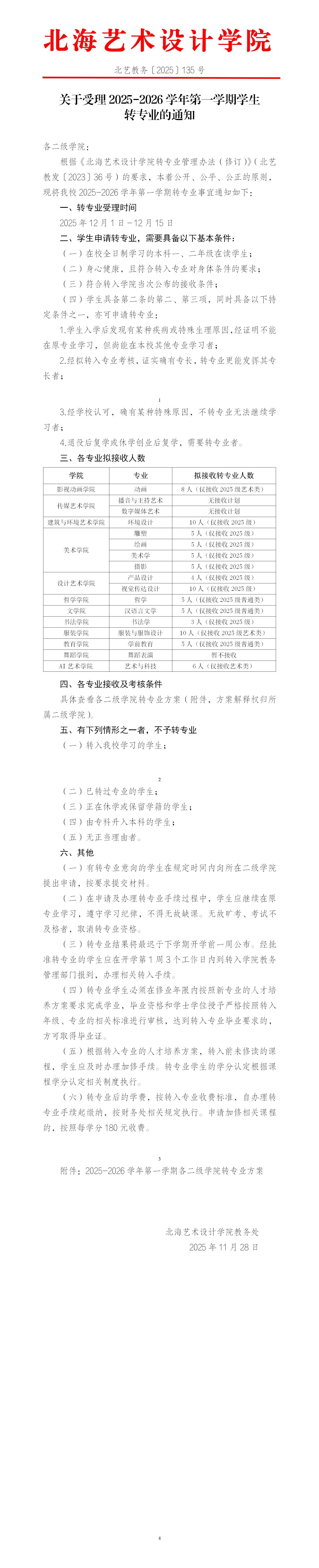 关于受理2025-2026学年第一学期学生转专业的通知