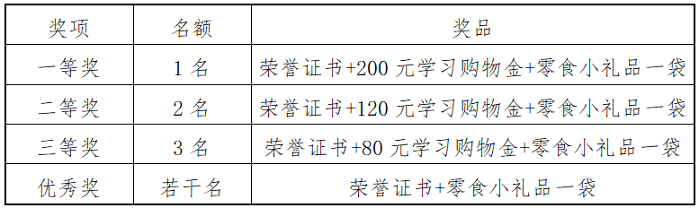 (2)根据平时阅读内容,投稿读后感、读书笔记、论文等(读书分享作品需贴合读书内容,主题鲜明,结构完整,内容真挚详实,原创无抄袭,查重率≤20%)。以Word形式,文末附所借书籍拍照照片,以“班级+姓名+电话+QQ号”方式命名发送到指定邮箱2268899673@qq.com。截止时间:4月30日21:00前。