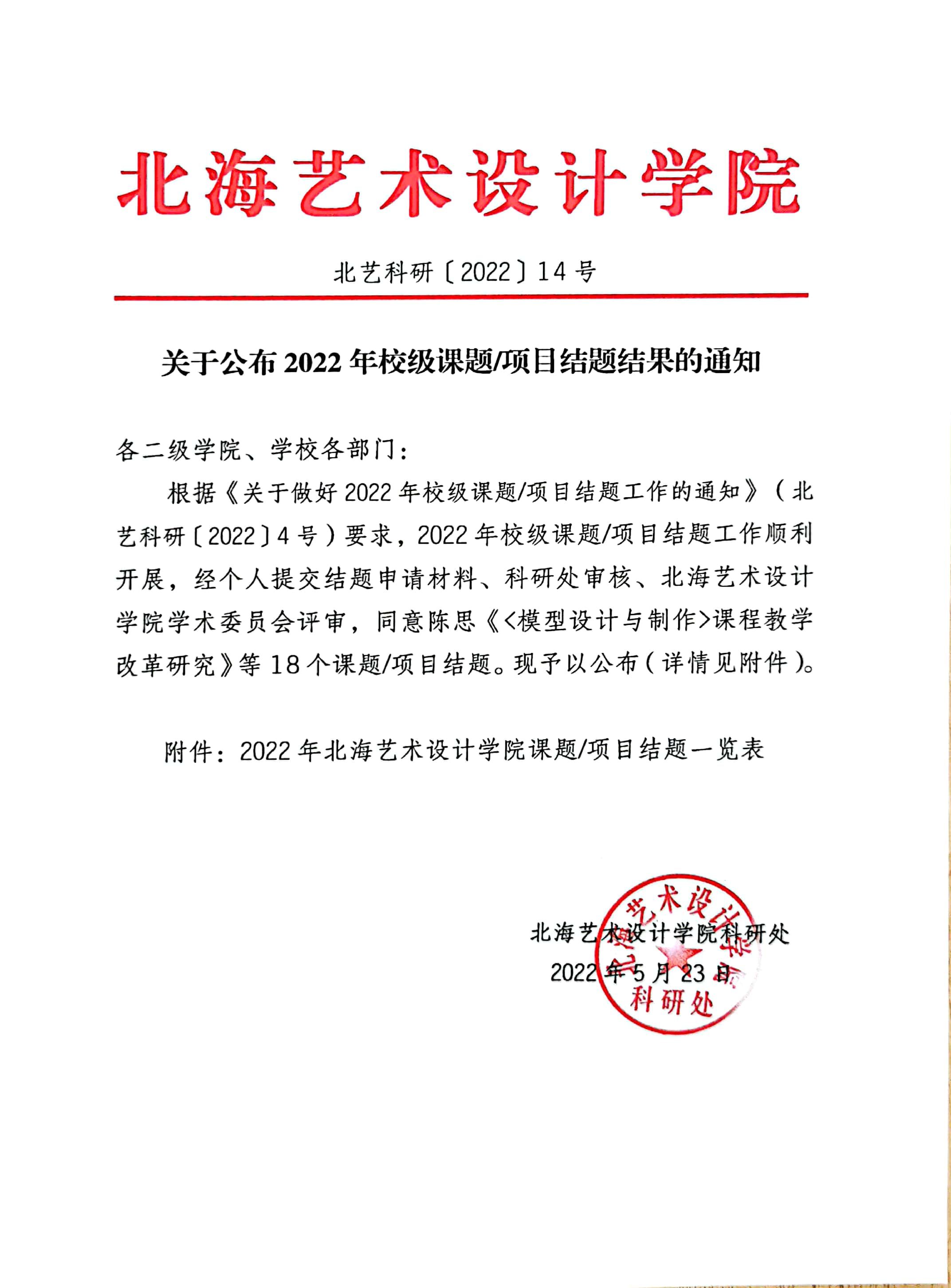 关于公布2022年校级课题/项目结题结果的通知