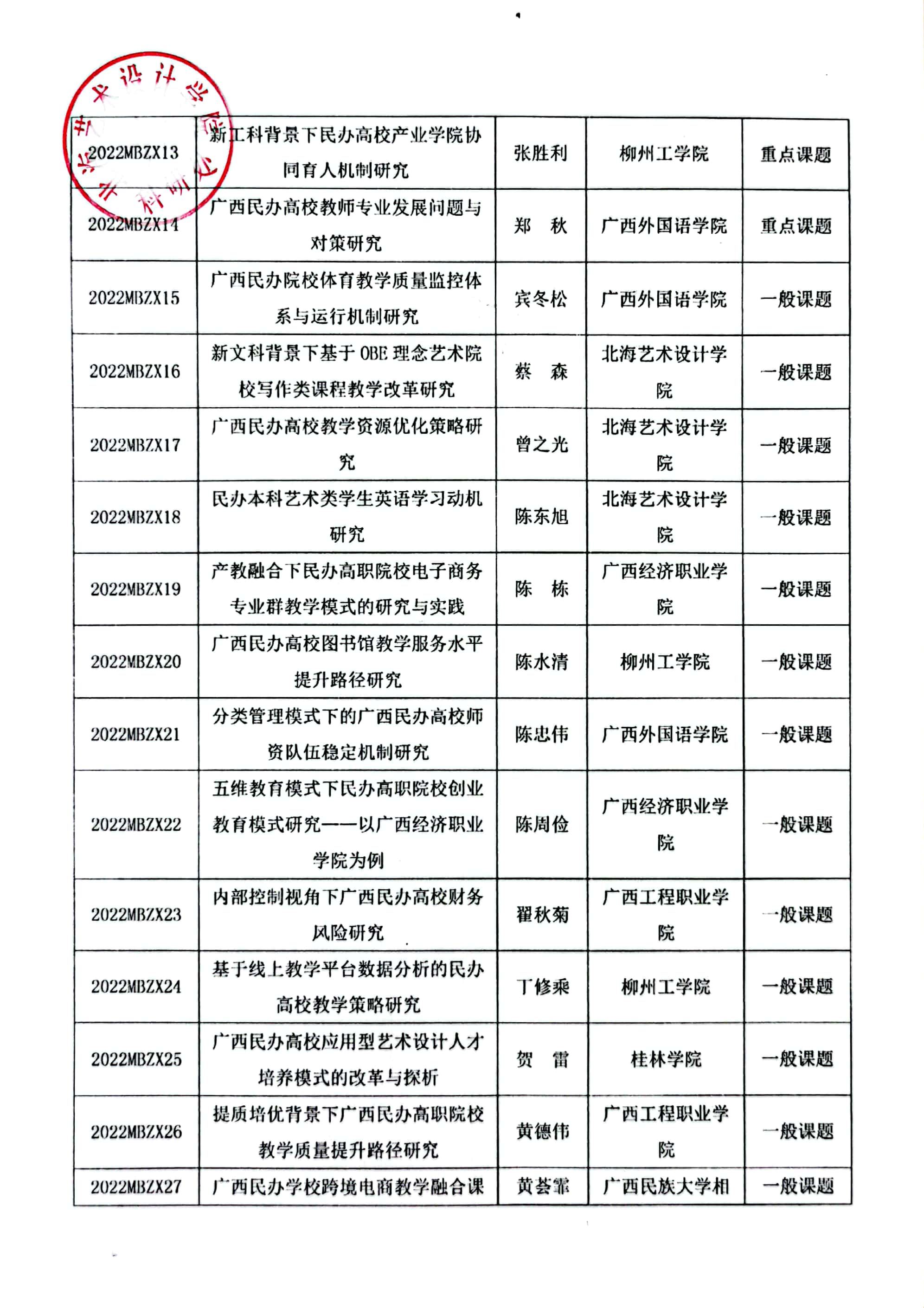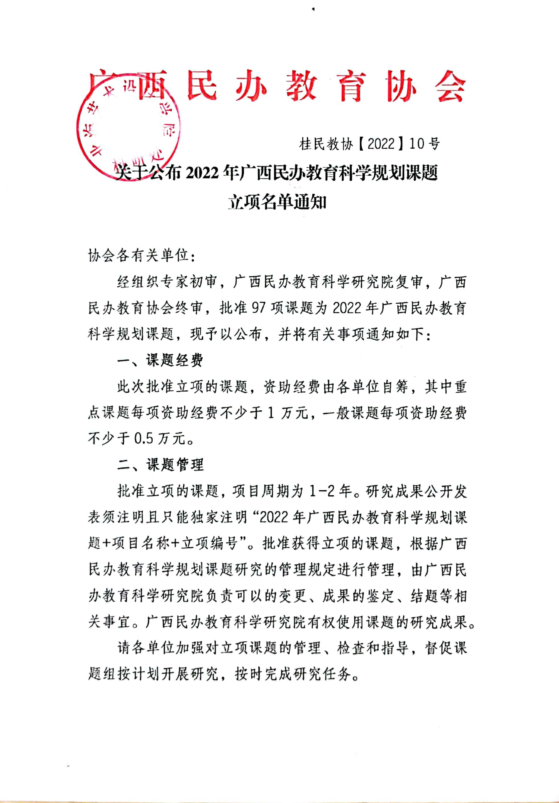 关于公布2022年广西民办教育科学规划课题立项名单通知文件