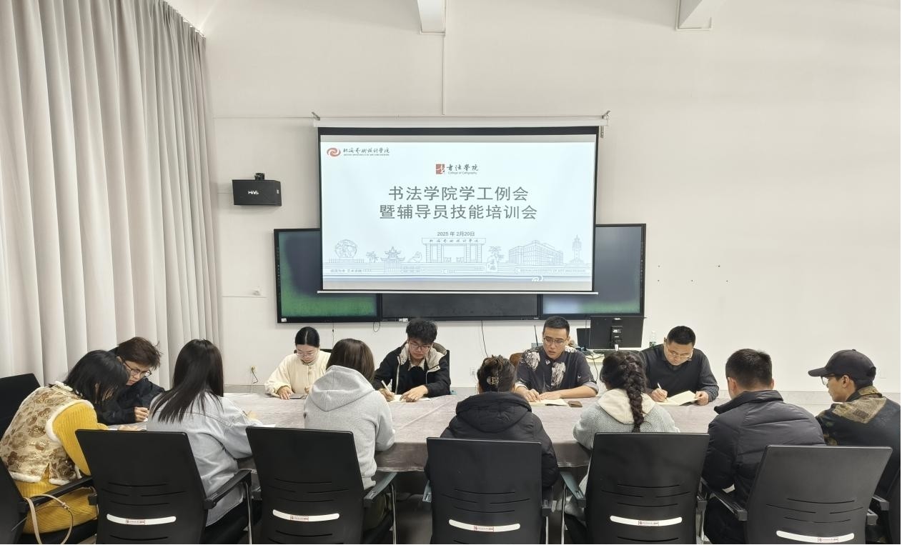 为深入贯彻落实学校学生工作部署,提升辅导员队伍的专业素养与育人能力,书法学院于2025年2月20日上午艺德楼507会议室召开学工例会暨辅导员技能培训会。书法学院党支部副书记左云飞、学工办主任李家琪全体学工教师及全体辅导员参加会议会议由李家琪主持。本次会议围绕思想政治引领、学风建设优化、学生管理创新及辅导员职业技能提升等主题展开。
