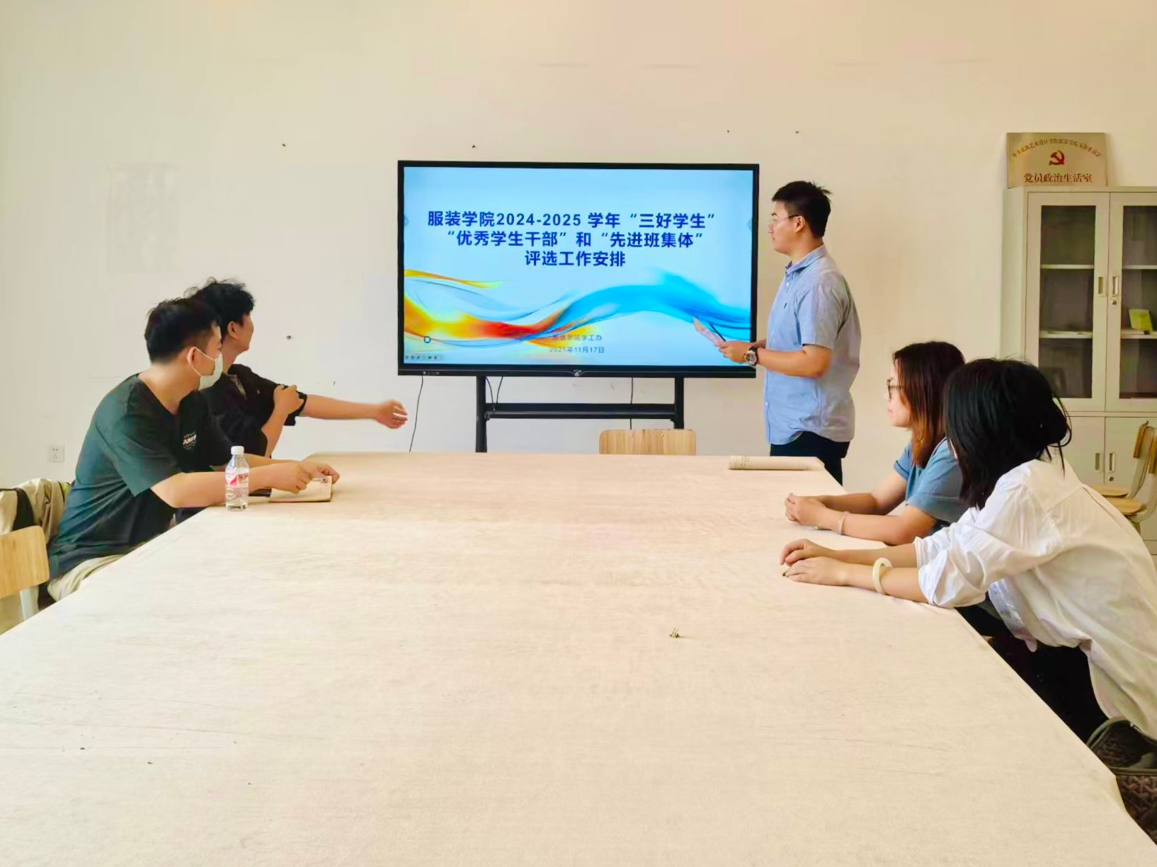 21日上午,服装学院学工办组织召开2024 - 2025学年“三好学生”“优秀学生干部”及“先进班集体”评选会,参会领导有服装学院党支部书记曹永攀、服装学院副院长郝士杰、学工办主任曲忠成、综合办主任严嘉宝以及2022、2023、2024级班级辅导员。会议由学工办罗春霖老师主持。会上,曲忠成老师介绍了此次评选条件和要求,此次评选秉持公平、公正、公开的原则,通过学生自荐、班级民主评议、班主任推荐等环节,广泛吸纳各方意见。评审组严格对照评选条件,审慎筛选,最终确定院级三好学生23名,拟推荐校级三好学生11名,同时拟推荐2个先进班集体。