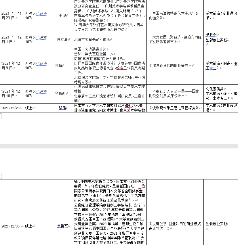 2021年下半年北艺名师大讲堂信息统计