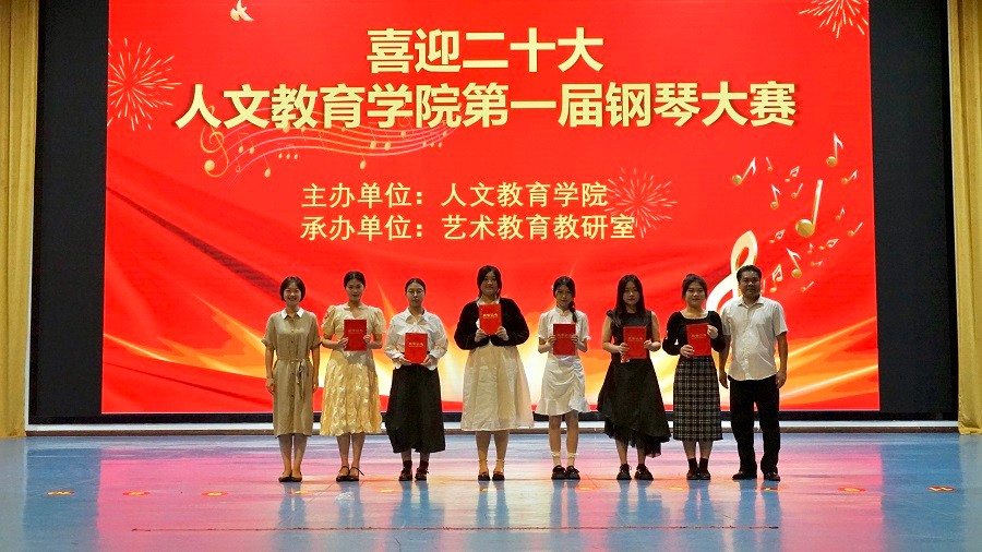 金秋十月,硕果累累2022年10月7日19时,由北海艺术设计学院人文教育学院主办,艺术教育教研室承办的“喜迎二十大--人文教育学院第一届钢琴大赛”,在西校区大礼堂隆重举行。北海艺术设计学院副校长王斌人文教育学院党总支书记刘承初院长熊秀峰副院长李水亮副院长李谦总支副书记邓欢,应邀出席大赛