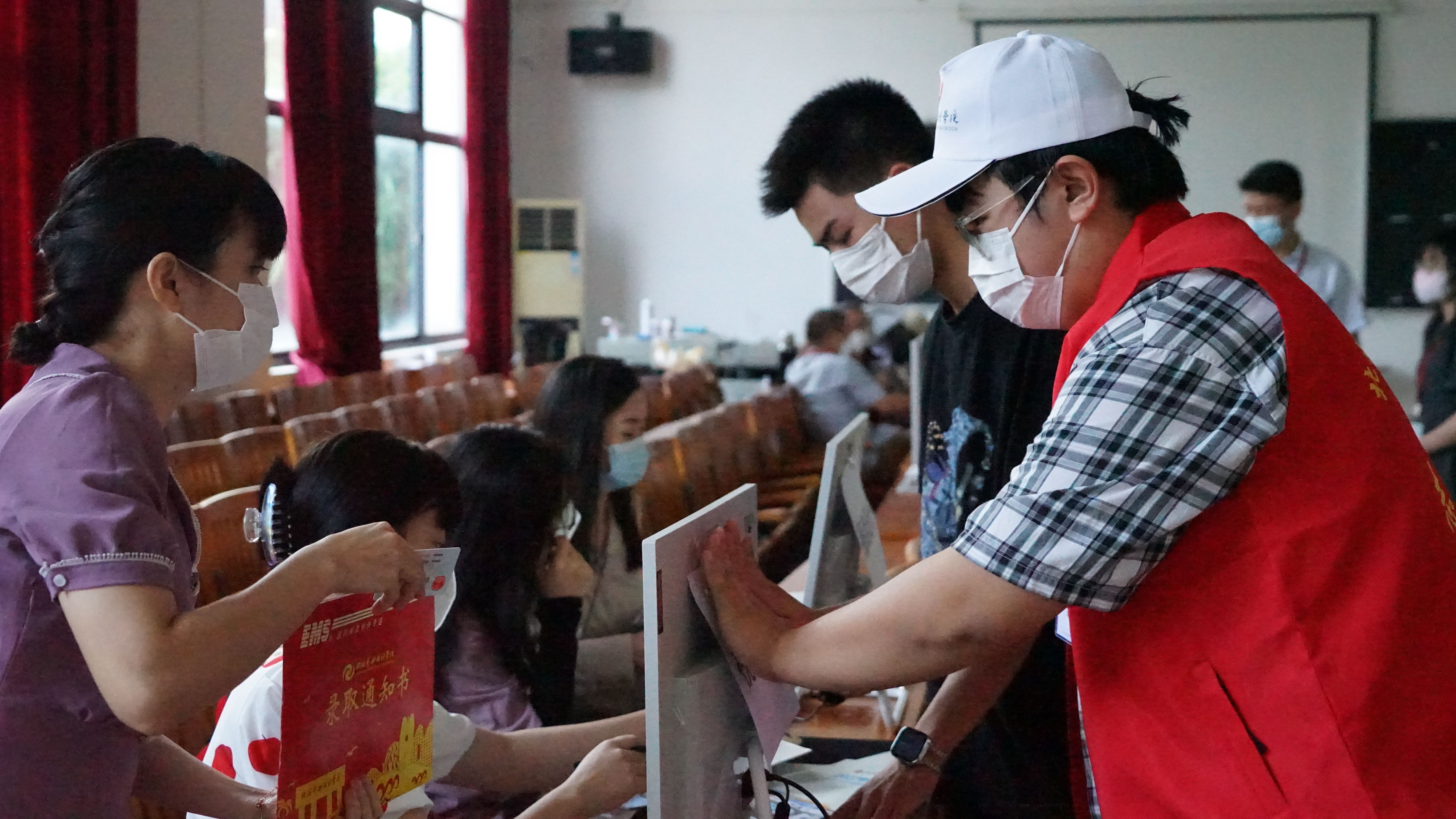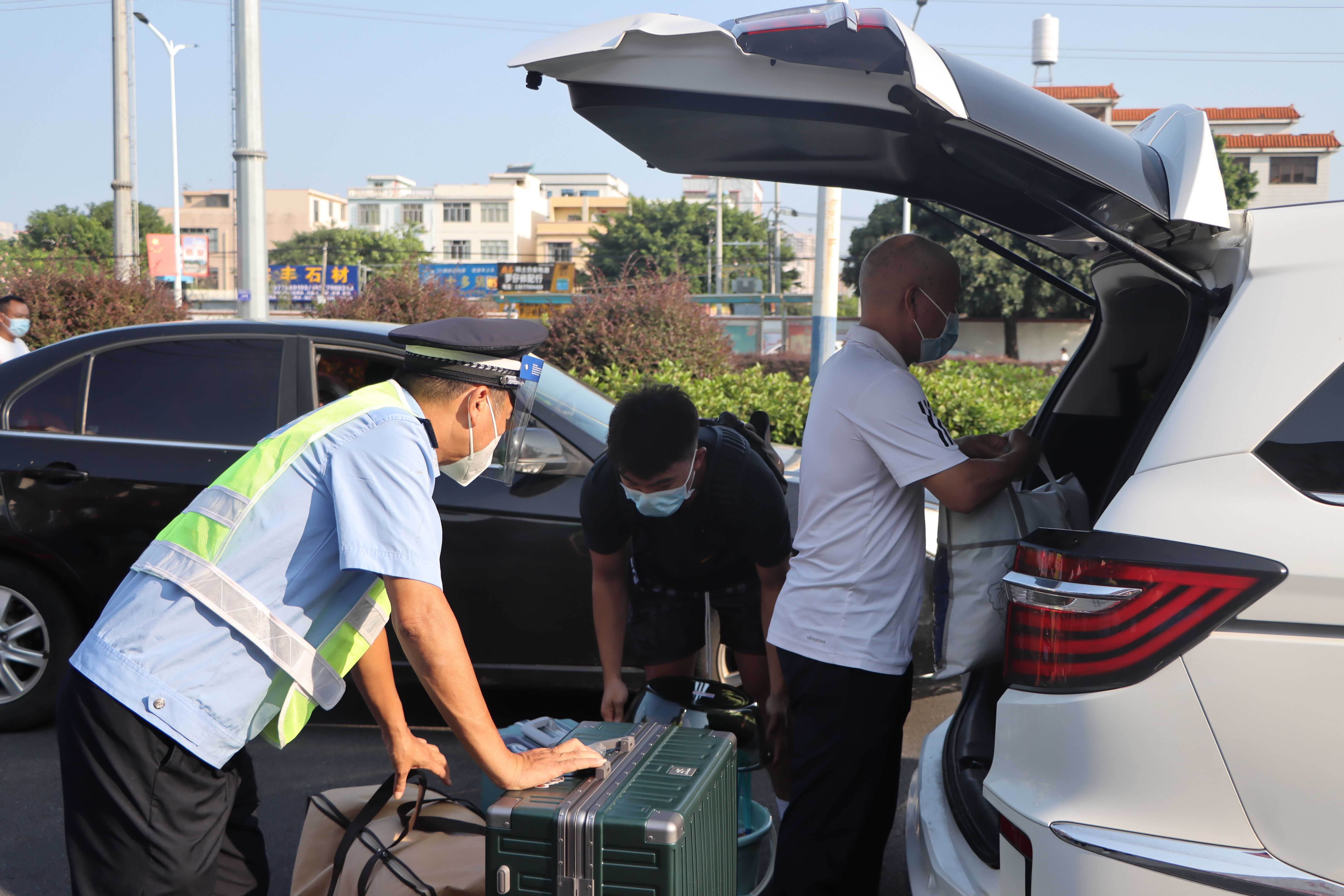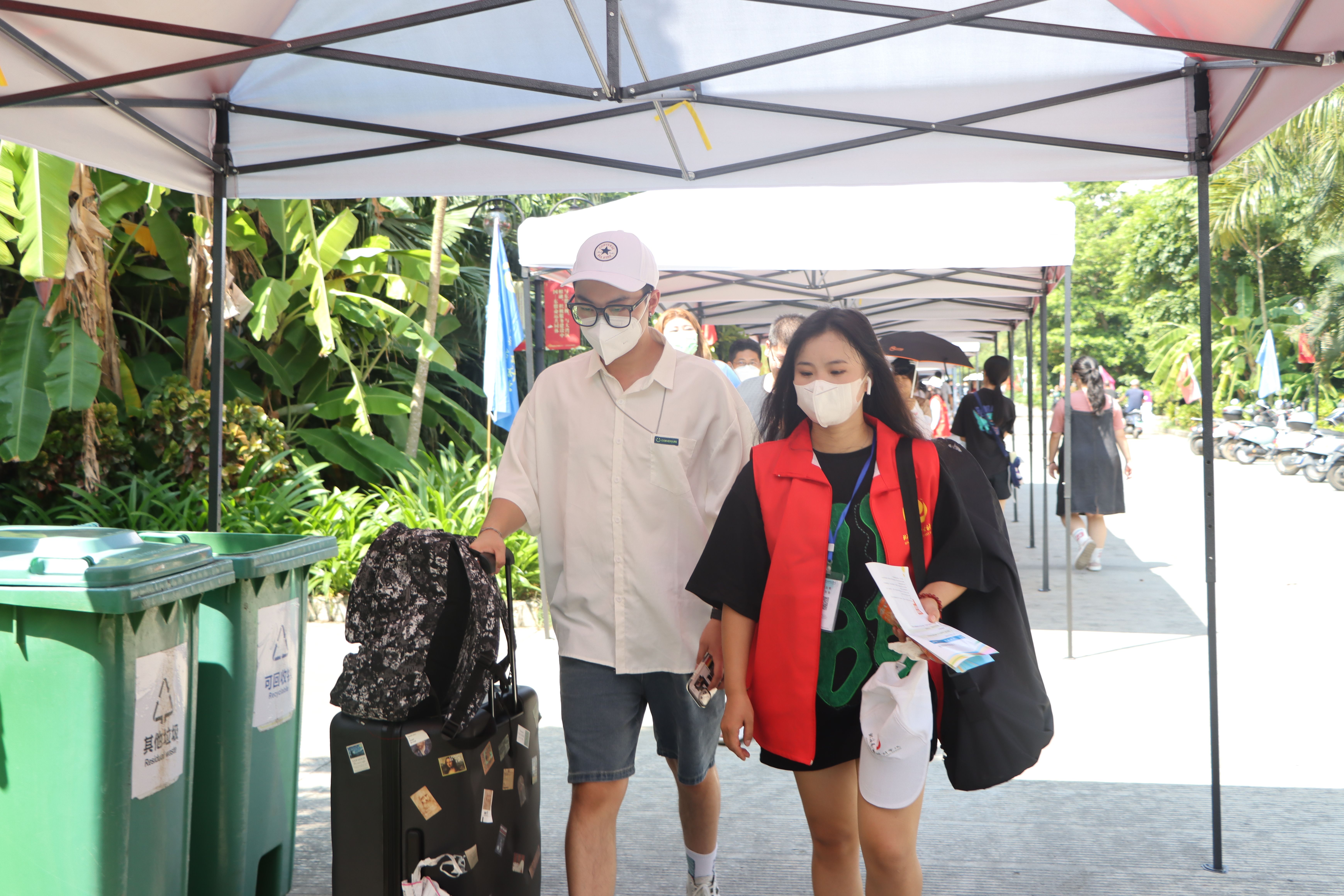 为确保新生入学工作的顺利开展,学校在北海火车站、北海福成机场均安排了迎新车辆。新生到达学校后,有序排队测量体温、查验录取通知书、广西健康码、通信大数据行程卡,以及对其行李进行消杀,方可入校。