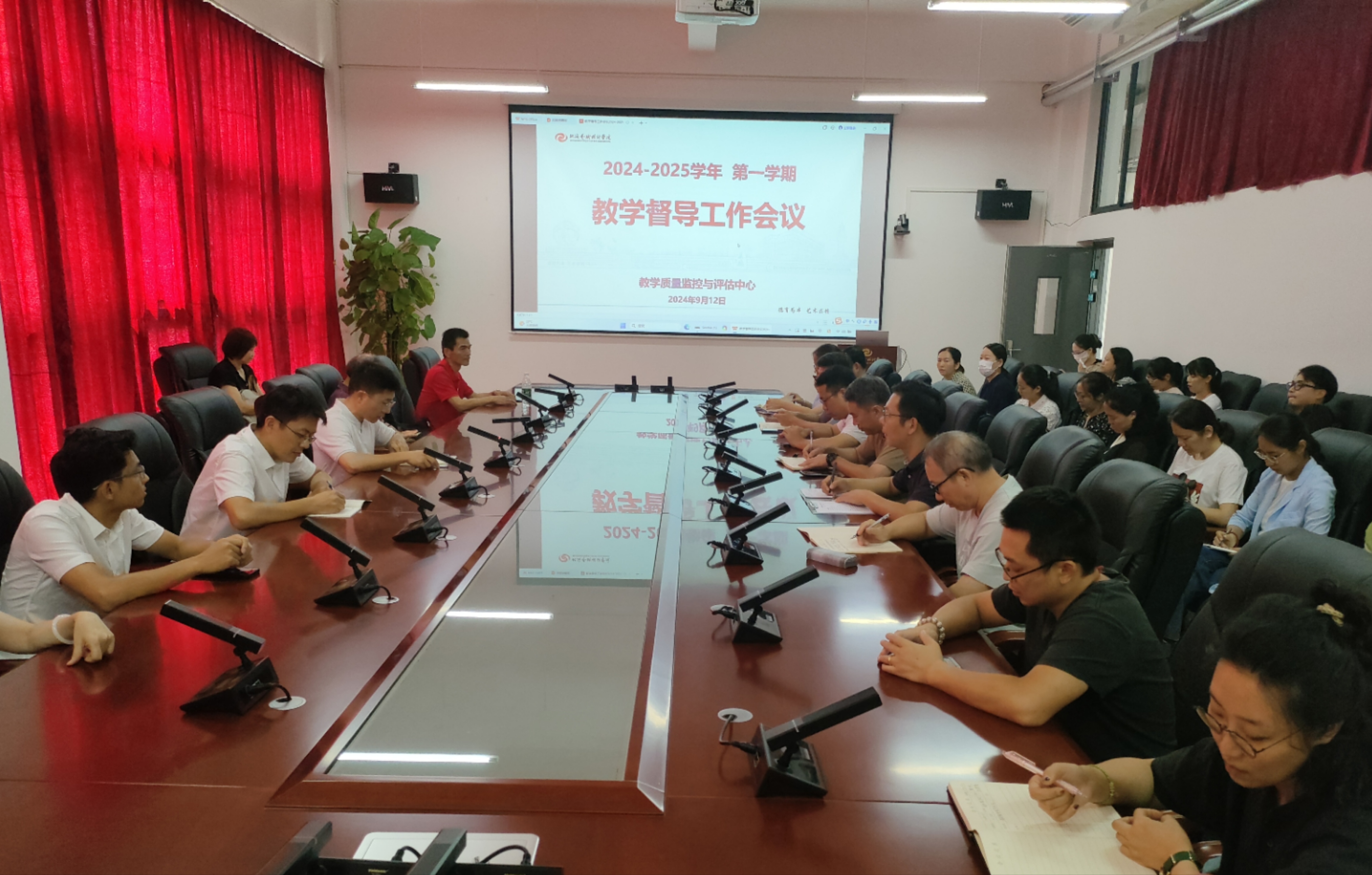 9 月 12 日上午,质评中心于图书馆 505 会议室举行 2024-2025 学年第一学期教学督导工作会议。校级专兼职督导与监测专家、质评中心、教务处及二级学院院级督导组组长等相关人员参与此次会议。