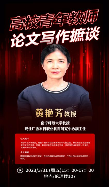 广西本科职业教育研究中心副主任黄艳芳教授应邀来我校开展《高校青年教师论文写作摭谈》讲座