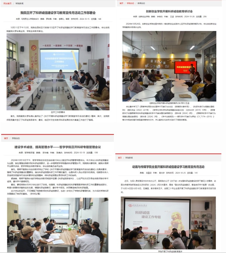 在学习教育活动过程中,各学院、部门还积极组织师生进行讨论和交流,分享学习心得和体会,形成了浓厚的学术氛围和良好的科研诚信风尚。