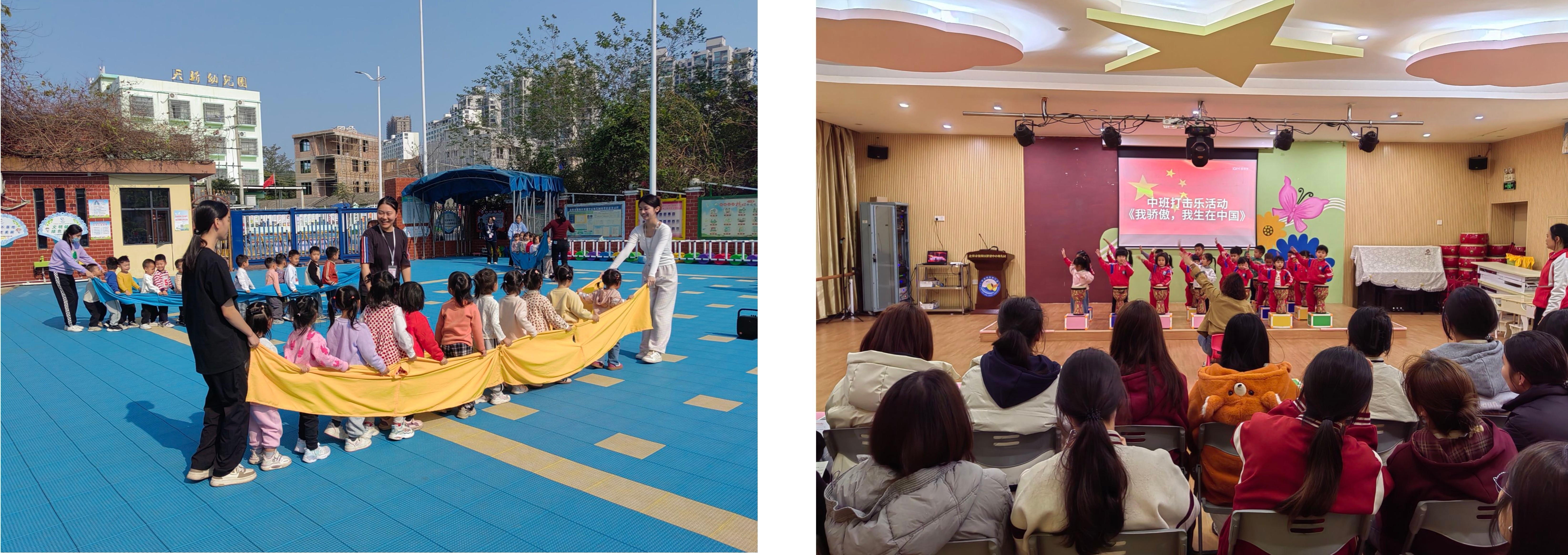 学前2402班李智燕带领幼儿做律动 学前2401班丁朝旭与幼儿游戏