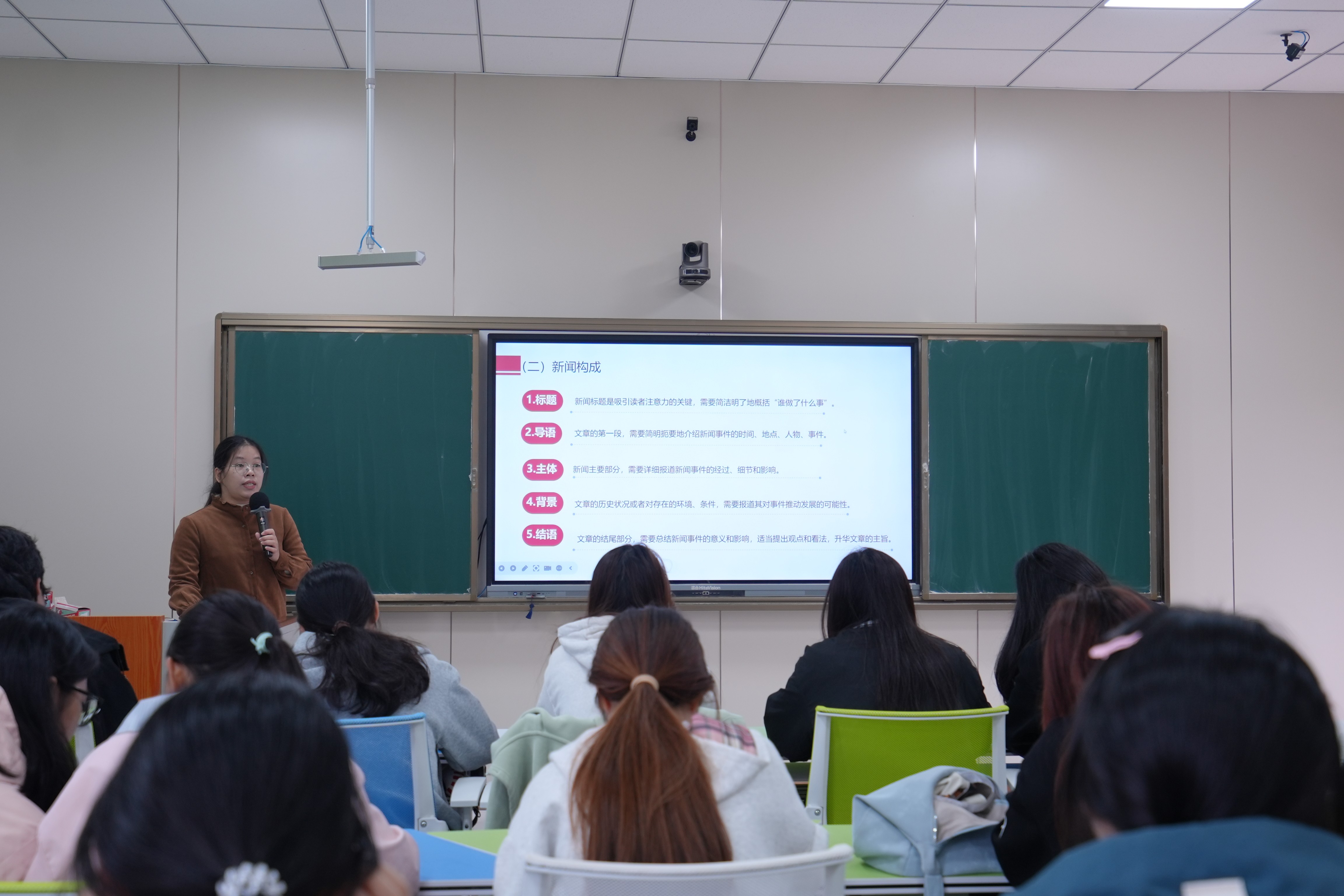 开班第一讲,哲学学院谢佩玲老师围绕 “校园新闻写作技巧” 授课,讲解选题、结构、语言等要点,强调新闻真实性与时效性,学员收获颇丰。