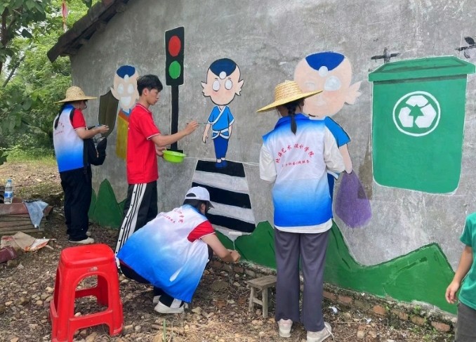 此次活动在合浦县石湾镇红锦村集中开展,以乡村振兴为主线,为乡村发展传“北艺”温暖。美术学院分团委选派学生干部代表3名,在老师们的带领下,先后开展了乡村小学支教活动、美丽乡村墙绘、关爱孤寡老人、红色宣讲、助收荔枝、花生、文艺汇演等多项活动。
