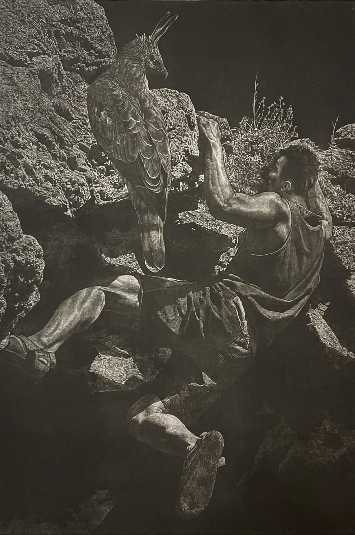 《庇护》 黑白木刻版画 70×180cm