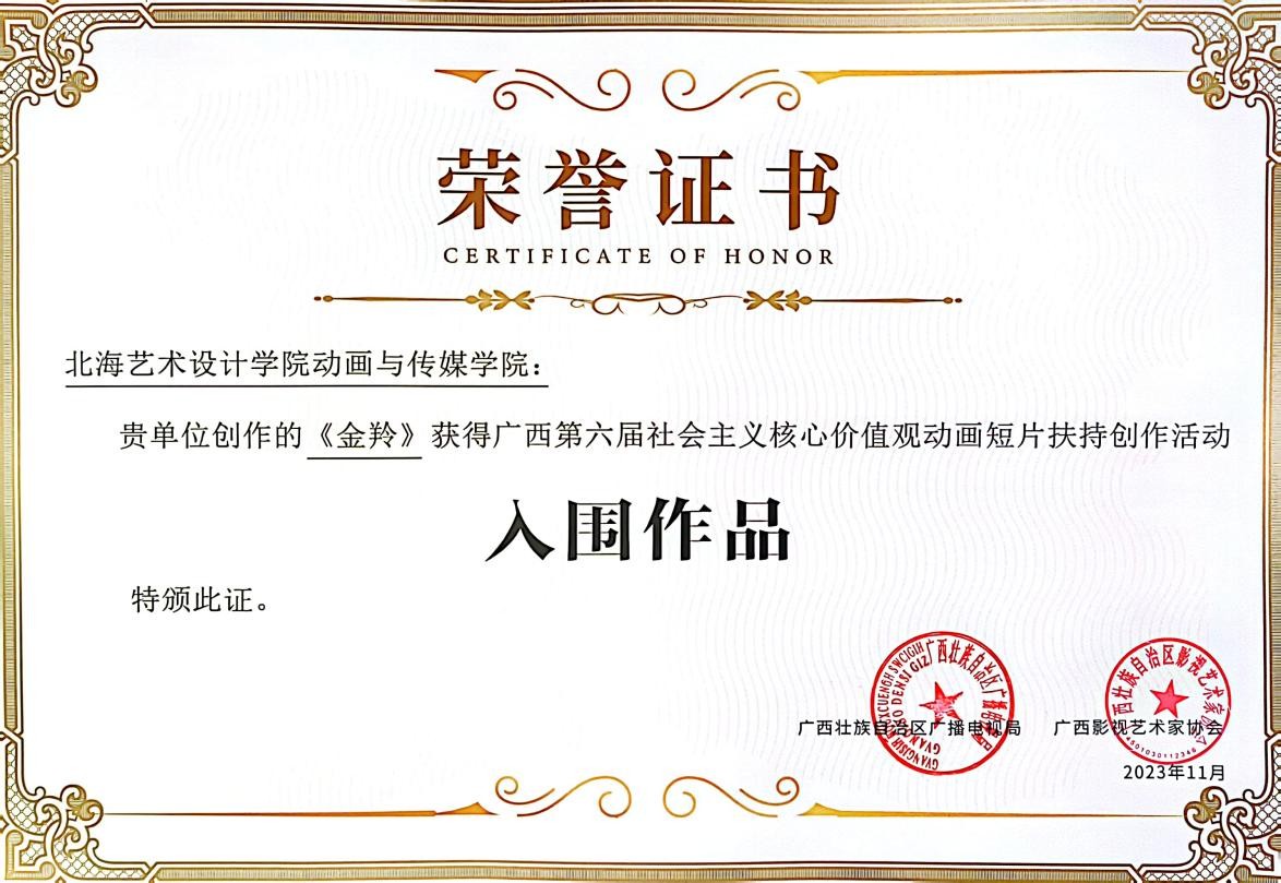 喜报|我校动画与传媒学院在广西第六届社会主义核心价值观动画短片扶持创作活动中取得佳绩