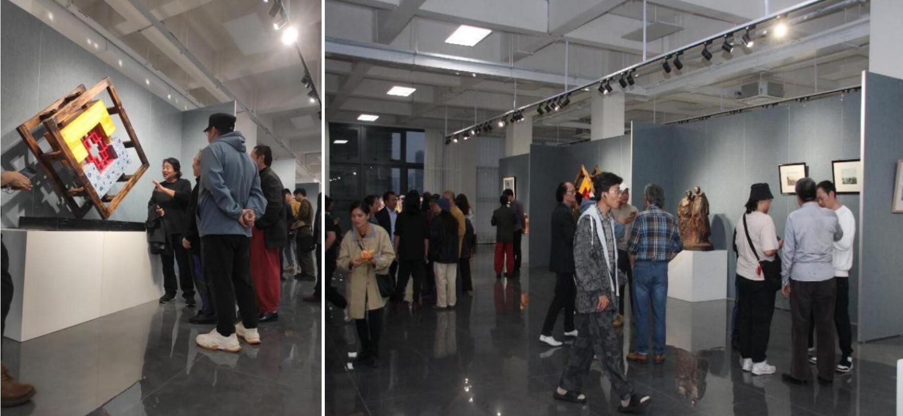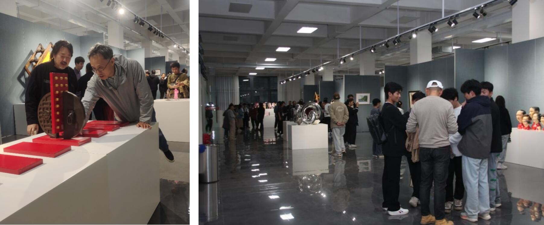 展览当天,硕大的展厅挤满了前来观展的师生,师生一起看展相互探讨,一起学习。此次展览作品以雕塑作品、公共艺术、绘画作品为主,兼具传统艺术与当代艺术,展现了当今艺术的多元性与包容性。艺术家用才华与创意打开了一扇通向想象世界的大门,为我们揭示了艺术的无穷可能性,他们以独特的视野和感知来反映生活,呈现了他们对于生活、时代和世界的观察与思考。(黄寿宁 摄)