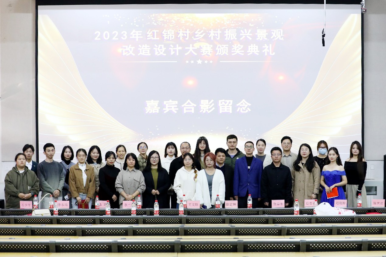 (红锦村乡村振兴景观改造设计大赛师生颁奖合影留念)
