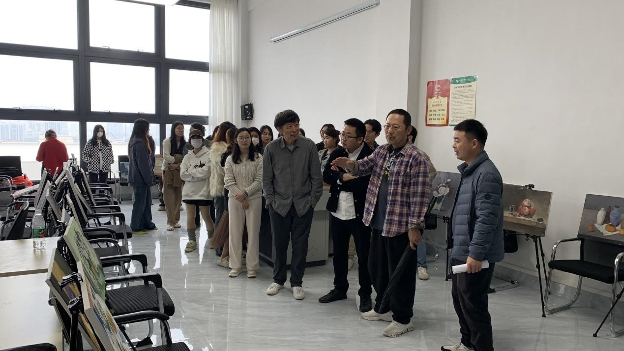 2024年1月11日,美术学院开展了美术学专业《油画基础》课程结课会看活动,出席本次活动有美术院院长刘斌,常务副院长龚为,副院长肖玺,副书记鲁明阳,美术学教研室主任陈建江,以及美术学院的多位外聘教授与专业课教师。